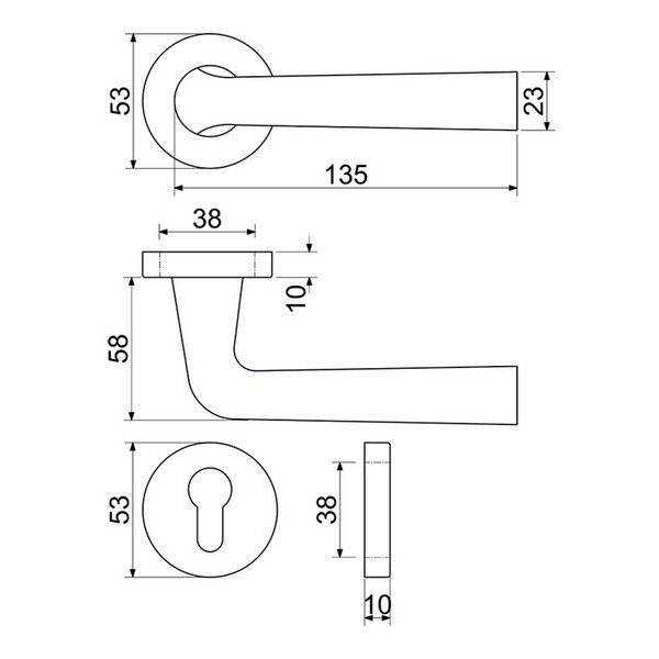 Elegantní ocelové dveřní kování Richter Czech RK.LOPAR v provedení matná černá je ekonomickým a přitom velmi praktickým řešením pro interiérové dveře. Díky kulatým rozetám působí nadčasově a decentně, hodí se tak do moderních i klasických interiérů. Povrchová úprava v matné černé barvě dodává klikám atraktivní vzhled a zároveň chrání povrch před opotřebením.Kování je vybaveno vratnou pružinou klik, která zajišťuje hladký a pohodlný chod. Dodává se pro dveře o tloušťce 38–60 mm, přičemž praktické dvě sady šroubů není nutné zkracovat. Montáž je rychlá a jednoduchá – v balení najdete veškerý spojovací materiál i návod. V provedení WC varianta obsahuje čtyřhran 6 × 6 mm s redukcí 6/8 mm, což zajišťuje univerzální využití.S hmotností 0,55 kg jde o pevné a spolehlivé kování, které díky své konstrukci poskytuje dlouhou životnost i při každodenním používání.Hlavní výhody produktu: moderní černé provedení v matné barvě vratná pružina pro komfortní používání odolná ocelová konstrukce dvě sady šroubů bez nutnosti zkracování jednoduchá montáž včetně spojovacího materiálu varianta WC s čtyřhranem 6 × 6 mm a redukcí 6/8 mmObsah balení: 1x pár klik včetně mechaniky 2x sada šroubů pro různé tloušťky dveří 1x sada spojovacího materiálu 1x návod k montáži (WC varianta: čtyřhran 6 × 6 mm + redukce 6/8 mm)Parametry a specifikace: materiál: ocel povrch: matná černá (CE) hmotnost: 0,55 kg (PZ varianta) vratná pružina: ano tloušťka dveří: 38–60 mm rozměry: viz technický výkres (klika 135 mm, rozeta Ø 53 mm)
