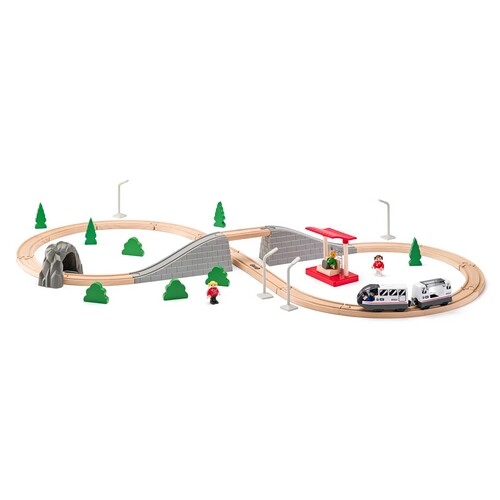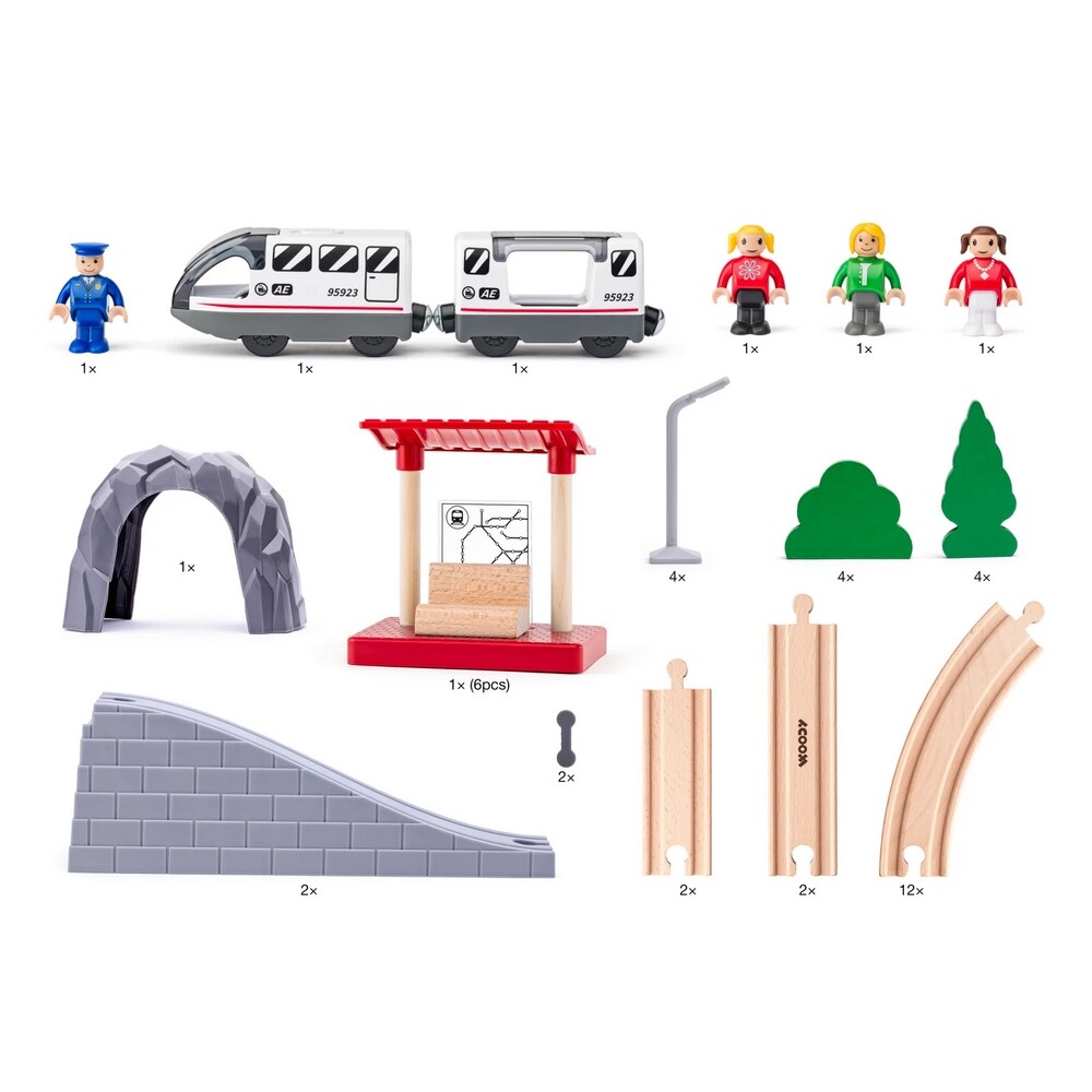 Dřevěná vláčkodráha Expresní vlak od značky Woody představuje moderní železniční set inspirovaný skutečnými městskými rychlovlaky. Děti si s ní užijí napínavé jízdy po dřevěných kolejích, které vedou přes most, tunelem i kolem nádražní zastávky.Součástí sady je moderní bílý vlak s lokomotivou a vagónem, dva cestující, nádraží s přístřeškem, tunel, stromky a pouliční lampy. Lokomotiva má realistický vzhled s průhlednou kabinou, do které lze usadit figurky cestujících. Celá dráha je navržena tak, aby děti mohly rozvíjet představivost, motorické dovednosti i schopnost sestavování a plánování trasy.Vláčkodráha je vyrobena z kvalitního dřeva v kombinaci s odolnými plastovými díly a je kompatibilní s většinou ostatních dřevěných vláčkodrah na trhu. Povrchová úprava je provedena bezpečnými barvami na vodní bázi, takže hračka je zcela bezpečná i pro menší děti.Hlavní výhody produktu realistický design moderního městského vlaku rozvíjí kreativitu, představivost a motorické dovednosti obsahuje tunel, nádraží, stromy a doplňky kompatibilní s dalšími dřevěnými vláčkodrahami vyrobeno z kvalitního dřeva a plastu s barvami na vodní báziObsah balení 1× lokomotiva a 1× vagón 2× figurka cestujících 1× nádraží s přístřeškem 1× tunel 4× stromky 4× pouliční lampy koleje a příslušenstvíParametry a specifikace značka: Woody materiál: dřevo + plast rozměry po sestavení: cca 90 × 45 × 25 cm doporučený věk: 3+