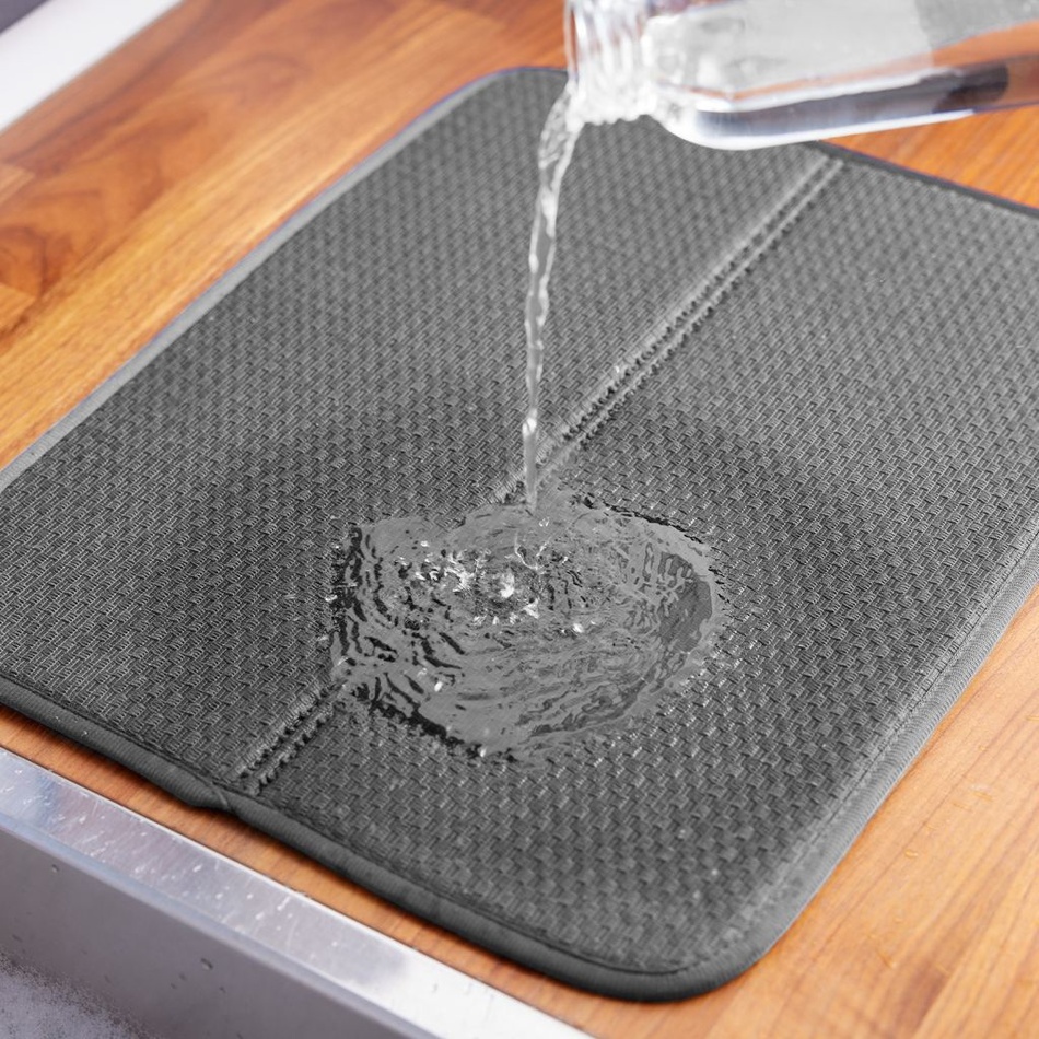 Tato sada 2 odkapávacích podložek na nádobí z vysoce savého a skrvnám odolného materiálu vám zajistí dokonalé usušení právě umytého nádobí, skla, hrnců, pánví apod. Jsou vyrobeny z mikrovlákna s vnitřním polstrováním. Disponují praktickým očkem na zavěšení a dají se i složit, a tím ušetří místo při skladování.Po použití nechte důkladně oschnout. Lze prát v pračce na 40 °C.