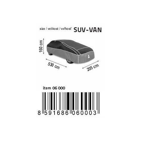 Použitím prémiové ochranné plachty dopřejete svému vozidlu špičkovou ochranu proti krupobití.Plachta zajistí maximální ochranu díky své zesílené, vrstvené konstrukci. Horní část je opatřena šestimilimetrovým ochranným polstrováním, které spolehlivě pohlcuje nárazy krup o průměru až 17 mm letících rychlostí 96 km/h.Moderní provedení v černé a šedé barvě je doplněno kontrastním lemováním, které zvyšuje viditelnost plachty při parkování venku.Oproti jiným plachtám jsou plachty Premium opatřeny čtyřmilimetrovým polstrováním rovněž na bocích, takže chrání vozidlo prakticky ze všech stran. Vnitřní povrch je navíc doplněn měkkou podšívkou, která chrání karoserii před vznikem škrábanců.Použití je snadné. Plachtu stačí přetáhnout přes celé vozidlo a zafixovat za spodní hrany nárazníků, či vhodné záhyby karoserie. Pro pevné zajištění plachty slouží 3x stahovací popruhy s klipem (vepředu, vzadu a uprostřed vozu). Plachta se snadno udržuje v čistotě. V případě potřeby ji stačí opláchnout vlažnou vodou a houbou.Součástí je rovněž praktické, na zip uzavíratelné balení, do kterého lze plachtu po použití snadno složit a uskladnit.Technické parametry a specifikace: velikost: SUV-VAN rozměry: 530 x 205 x 160 cm zesílení vrchní strany: 6 mm zesílení boční strany: 4 mm materiál: 70% polyester, 30% bavlna upnutí: pomocí všité gumy zajištění: pomocí 3x popruhů barva: černá, se žlutým lememvelikost SUV-VAN - vhodné pro vozy: Aston MartinDB12, DBXAudiAlroad, e-tron, Q7, Q8, Q8 e-tronBentleyBentaygaBMWiX, X5, X6, X7, XMCitroënC4 Grand Picasso, JumpyFerrariPurosangueFiatFreemont, Scudo, TalentoFordEdge, Galaxy, S-MAX, Tourneo ConnectHyundaiGrand Santa Fe, ix55, Staria, TucsonChryslerGrand Voyager, VoyagerInfinitiQX70JeepGrand CherokeeKiaCarnival, EV9LamborghiniUrusLand RoverDefender, Discovery, Range Rover, Range Rover SportLexusLM, LX470, RXMaseratiLevanteMazdaCX-80, MPVMercedesCitan, EQE SUV, EQS, EQS SUV, EQT, EQV, GLE, GL-Klasse, GLS, R-Klasse, VitoMitsubishiChallenger, Outlander, PajeroNIOEL6, EL7, EL8NissanNavara, PatrolPeugeotExpertPorscheCayenneRenaultGrand KangooSsangYongActyon, RextonTeslaModel XToyotaHighlander, Land CruiserVolkswagenSharan, TouaregVolvoXC90