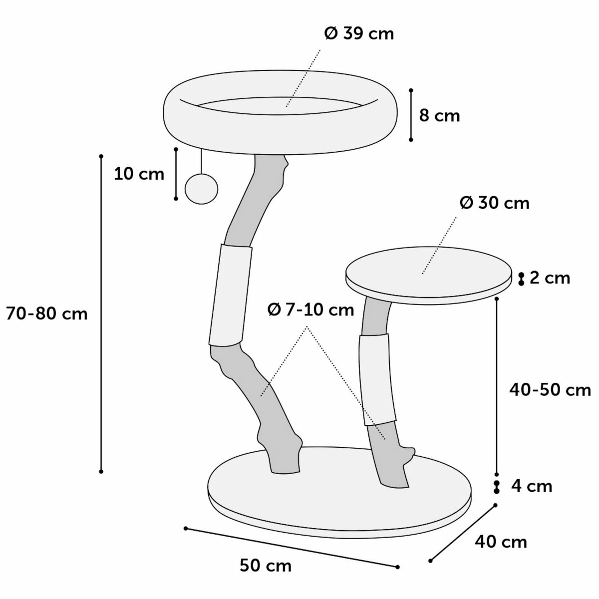 Dopřejte své kočce stylové místo na hraní a odpočinek! Přírodní dřevo se perfektně hodí do každého interiéru a měkká plyšová odpočívadla poskytují extra pohodlí. Se sisalovým provazem na sloupcích bude Vaše kočka a její drápky v sedmém nebi.Parametry a specifikace: 2 pohodlné odpočívací plošiny o průměru 30 a 39 cm škrabadlo s jutovým lanem s hračkou a rolničkou pro extra zábavu materiál: měkký plyš s gramáží 500 g/m² jutové lano 8 mm