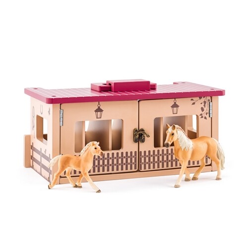 Faunica Stáj s koňmi je nádherná hrací sada, která potěší všechny malé milovníky koní. Stylová stáj v béžovo-vínovém provedení nabízí prostor pro péči o koně i jejich ustájení a stane se centrem každého dětského ranče. S detailním zpracováním a realistickým designem přináší dětem pocit, že se ocitly na opravdovém statku.Součástí sady jsou dvě figurky kůň a hříbě, které děti mohou umístit dovnitř stáje nebo nechat volně pobíhat kolem. Dveře i okna stáje lze otevírat, což usnadňuje hru a umožňuje dětem snadno manipulovat s figurkami. Díky kvalitnímu plastu je stáj pevná, odolná a vhodná pro časté hraní. Všechny prvky jsou bezpečné a přizpůsobené dětem od 3 let.Stáj od značky Faunica podporuje rozvoj představivosti, jemné motoriky i péče o zvířata. Děti si s ní mohou vytvářet vlastní příběhy o životě na farmě a kombinovat ji s dalšími sadami ze stejné kolekce.Parametry a specifikace materiál: plast rozměry balení: 44,5 × 28,5 × 5 cm barva: béžová, vínová doporučený věk: od 3 letObsah balení 1× stáj 1× kůň 1× hříbě