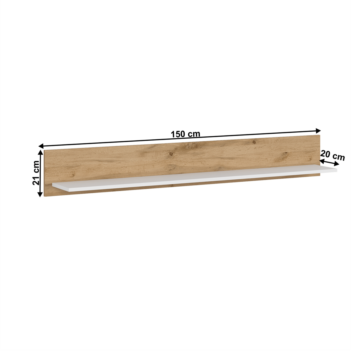 Police VILGO 150 doplní prázdnou stěnu a vytvoří praktické místo pro fotografie, dekorace nebo drobnosti, které chcete mít na očích. Jednoduché provedení a čisté linie zaručují, že krásně zapadne do moderního i klasického interiéru. Stane se nenápadným, ale zároveň velmi elegantním prvkem celé místnosti.Parametry: materiál: DTD laminovaná / ABS hrany barva: bílá lesklá / dub wotan rozměry (ŠxHxV): 150 × 20 × 21 cm tloušťka materiálu: 1,6–2,2 cm nosnost: 2 kg otevřený úložný prostor dodáváno v demontu