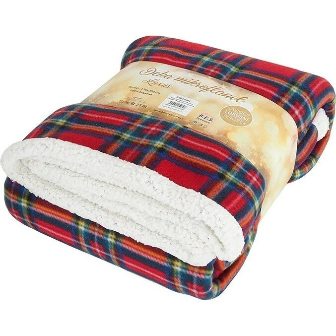 B.E.S. Petrovice Beránková deka Buffalo Káro červeno-zelená, 150 x 200 cm