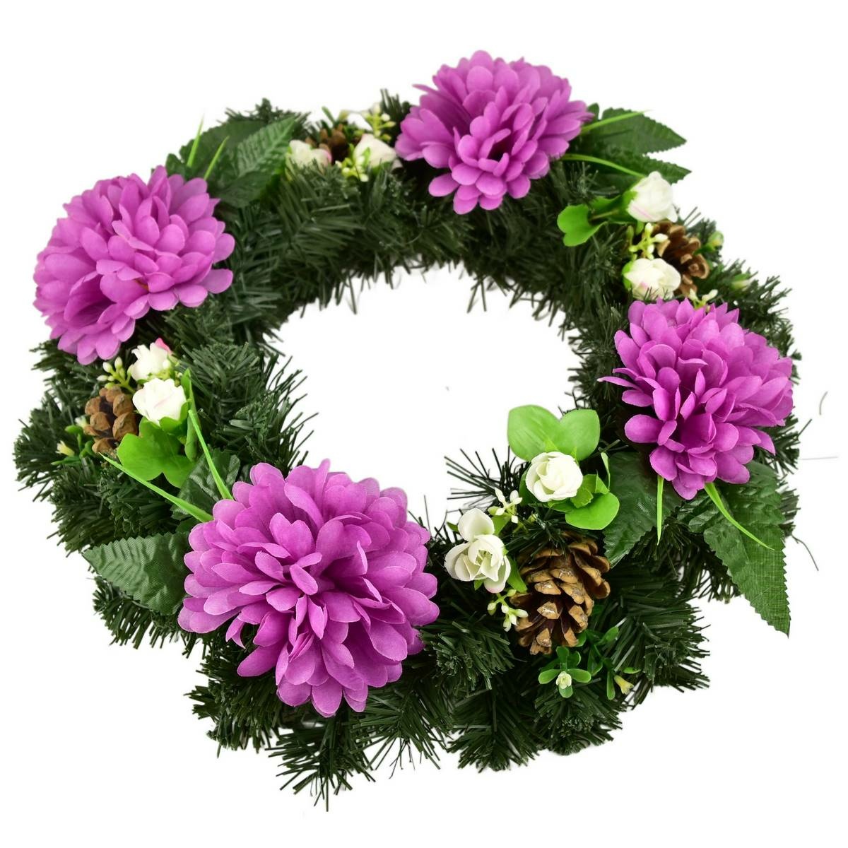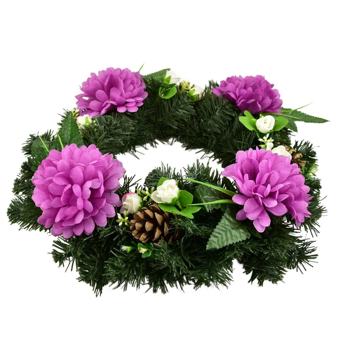 Dušičkový věnec Fialové chryzantémy, 35 cm