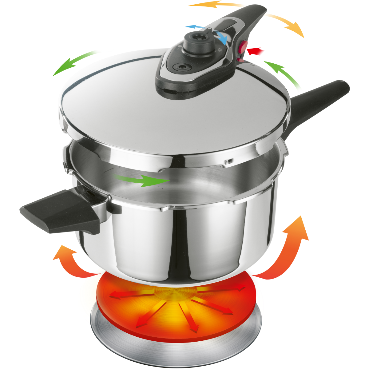 Tlakový hrnec Vape 4 l od značky Lamart je praktickým pomocníkem pro rychlou a úspornou přípravu pokrmů. Vyrobený je z vysoce kvalitní nerezové oceli 18/10 a odolného plastu, zaručuje dlouhou životnost a snadnou údržbu. Jeho elegantní lesklý povrch doplněný o ergonomické rukojeti poskytuje jistý úchop a pohodlnou manipulaci při vaření.Tlakový hrnec je vybaven sendvičovým dnem, které zajišťuje rovnoměrné rozložení tepla a efektivní přenos energie. Díky tomu se zkracuje doba vaření, zachovává se více živin a šetří energie. Hrnec je vhodný pro všechny typy sporáků včetně indukčních. Díky objemu 4 litry je ideální pro každodenní vaření menších i středních porcí, například polévek, masa, zeleniny či luštěnin. Bezpečnost při používání zaručuje čtyřnásobný bezpečnostní systém zahrnující dvojitý ventil, pojistku proti otevření pod tlakem, indikátor tlaku a bezpečnostní uzávěr víka. Tlak lze snadno regulovat pomocí dvou úrovní – LOW pro jemné vaření a HIGH pro rychlé a intenzivní dušení. Konstrukce zaručuje dokonalé utěsnění víka a plynulé odpařování páry.Hlavní výhody produktu vysoce kvalitní nerezová ocel 18/10 a odolný plast sendvičové dno pro rovnoměrné rozložení tepla vhodný pro všechny typy sporáků včetně indukce čtyřnásobný bezpečnostní systém (dvojitý ventil, pojistka proti otevření, indikátor tlaku, bezpečnostní uzávěr víka) dvě úrovně tlaku pro různé druhy vaření ergonomické rukojeti pro bezpečné uchopení moderní design a snadná údržbaObsah balení 1× tlakový hrnec Lamart LT1311 Vape 4 l s víkemParametry a specifikace objem: 4 l materiál: nerezová ocel 18/10, plast pracovní tlak: 70–100 kPa maximální tlak: 300 kPa typ dna: sendvičové funkce: 2 stupně tlaku (LOW / HIGH) hmotnost: 3,54 kg kompatibilita: všechny typy sporáků včetně indukce barva: stříbrná, černá certifikace: EN 12778:2002+A1:2005 záruka: 3 roky