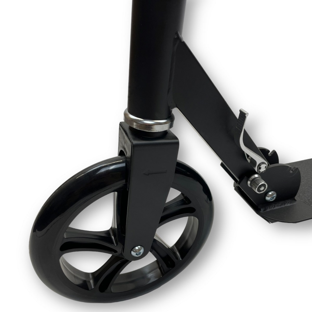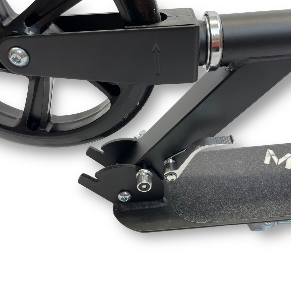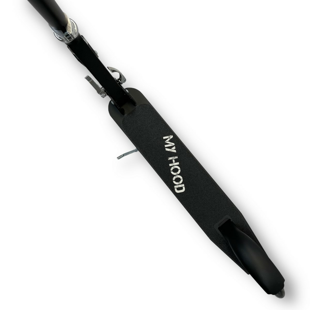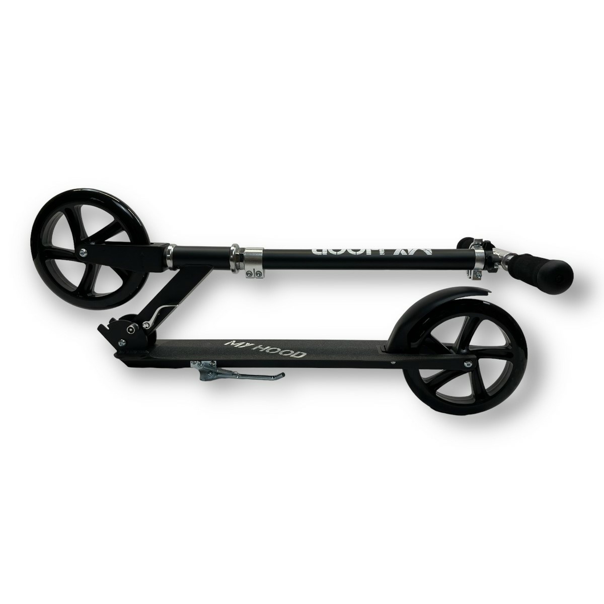 Tato opravdu kvalitní klasická koloběžka je opatřena velkými 200mm PU kolečky, která spolu s kuličkovými ložisky ABEC 5 zajišťují pohodlnou jízdu bez námahy. Pevný hliníkový rám se silným lakováním koloběžce zajišťuje dobrou odolnost a to při hmotnosti pouhých 3,6 kg. K výbavě koloběžky patří i výkonná brzda na zadním kole. Koloběžka My Hood 200 disponuje nosností 100 kg a výšku řídítek lze nastavit v rozmezí od 88 do 98 cm. Díky chytrému skládacímu mechanismu koloběžku snadno a rychle složíte. Kolobězka je vhodná pro děti od 5 let.Upozornění: Fotografie detailů jsou pouze ilustrační. Barva koloběžky je zobrazena na úvodní fotografii.Technické parametry: materiál konstrukce: hliník se silným nátěrem materiál koleček: PU průměr trubky: 30 mm průměr koleček: 200 mm délka: 92 cm nastavitelná výška: cca 88 - 98 cm rozměry nášlapu: 44 x 11 cm hmotnost: 3,6 kg max. nosnost: 100 kg