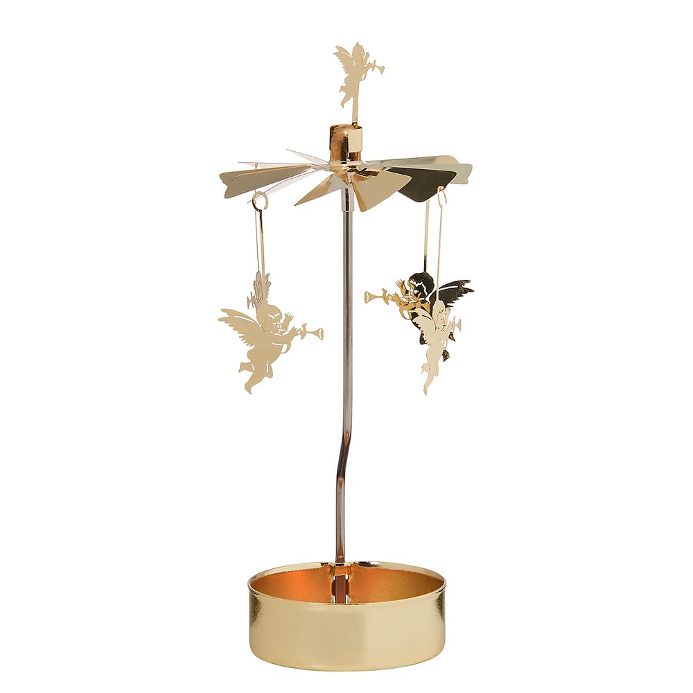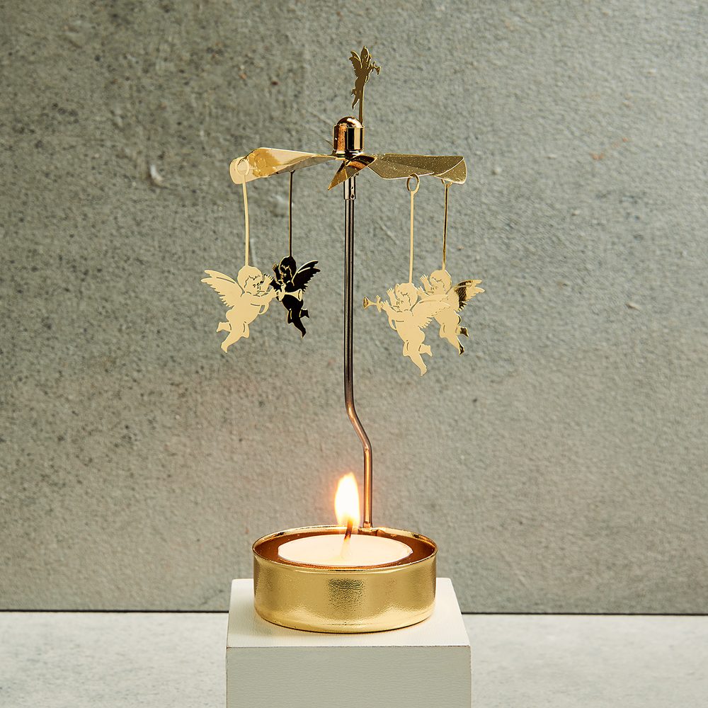 snadné na sestavení čajová svíčka není součást balení Tento kolotoč na čajovou svíčku MERRY-GO-ROUND pro Vás pohne i andělem. V okamžiku, kdy zapálíte svíčku, stoupá horký vzduch a rozhýbou se i malá vrtulka s křídly. Díky tomu se začnou drobní andílci točit.