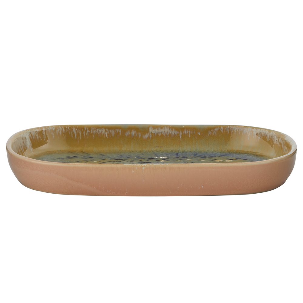 Rozměry: D 30 x Š 18 x V 4 cm Materiál: kamenina, reaktivní krakelovaná glazura Další informace: Vhodné do myčky nádobí a mikrovlnné trouby. Produkt byl zpracován speciální technikou reaktivní krakelované glazury, kdy se během vypalování vytvářejí jemné prasklinky a finální barva. Díky tomu se odstín i vzor jednotlivých kusů mohou mírně lišit. Jedinečný styl na stole: nádobí SINTRA zaujme dynamickými barevnými přechody a abstraktními vzory. Tato unikátní kameninová kolekce s krakelovanou glazurou vyzařuje…