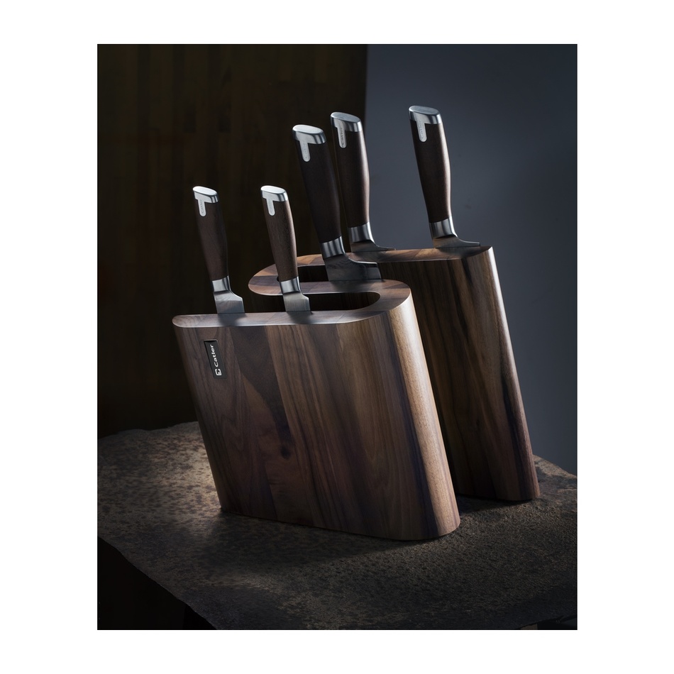 Nezaměnitelná kresba vysoce kvalitního dřeva z ořechu a rafinovaný vzhled z dílny italských designerů činní z tohoto magnetického držáku na nože umělecké dílo. Díky silnému magnetu udrží až 10 velkých nožů – pevně, bez sjíždění. Tento způsob skladování nožů na vzduchu zaručuje jejich hygienickou čistotu bez nežádoucí vlhkosti. Navíc máte nože na očích a víte hned, po kterém sáhnout.Dodáváno bez nožů.