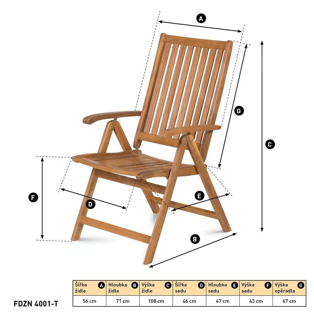 Polohovací křesla FDZN 4001-T od značky Fieldmann představují elegantní a funkční řešení pro pohodlné posezení na zahradě, terase i v interiéru. Balení obsahuje dva kusy skládacích křesel, které vynikají nejen ergonomickým tvarem, ale i možností nastavení opěrky zad do pěti poloh. Díky tomuto provedení si snadno přizpůsobíte posez podle aktuální potřeby, od vzpřímeného sezení při jídle až po odpočinek v pololeže. Nastavení se jednoduše provádí přes posun loketní opěrky, což oceníte při každodenním užívání.Křesla jsou vyrobena z odolného tropického dřeva akácie, které se vyznačuje dlouhou životností, pevností a odolností vůči povětrnostním podmínkám. Díky tomu je nábytek vhodný nejen do interiéru, ale i pro celoroční použití venku. Přírodní odstín dřeva se navíc snadno kombinuje s dalšími prvky venkovního posezení. Sedák i zádová opěrka jsou ergonomicky tvarované, čímž přispívají k většímu pohodlí při delším sezení. Ve složeném stavu mají křesla minimální nároky na prostor, takže je snadno uskladníte mimo sezónu.Sada je ideální volbou pro každého, kdo hledá spojení komfortu, kvality a snadného uskladnění. Křesla navíc umožňují dokoupení speciálních potahů v různých barvách i vzorech, což vám pomůže doladit vzhled posezení dle vašich představ.Hlavní výhody produktu: ergonomicky tvarovaný sedák a opěrka pro pohodlné sezení možnost nastavení opěrky zad do 5 poloh skládací konstrukce s minimálními nároky na prostor při skladování odolné dřevo akácie vhodné do interiéru i exteriéru možnost dokoupení potahů v různých barváchObsah balení: 2x polohovací křeslo Fieldmann FDZN 4001-T