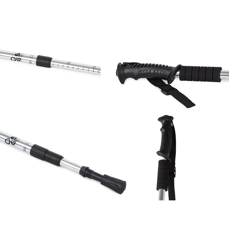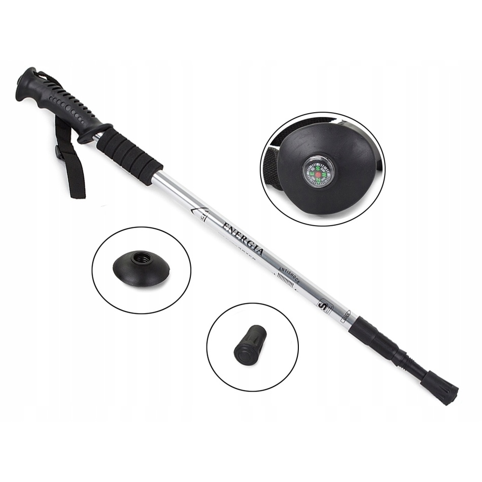 Kvalitní teleskopické Nordic walking hole se systémem odpružení Antishock a vestavěným kompasem. Vyrobeny z extrémně lehké a odolné hliníkové slitiny. Hole jsou vhodné na asfalt a jiné tvrdé povrchy i na nerovný povrch jako písek, sníh, led apod.Délka holí je nastavitelná, jednoduše přizpůsobíte své výšce a potřebám. Maximální délka 135 cm. Ergonomicky neklouzavá rukojeť a nastavitelný popruh zabrání vyklouznutí hole z ruky.Při chůzi Nordic walking spálíte o 20-40% více kalorií než při běžné chůzi a dochází ke stimulaci téměř všech svalových skupin, zejména dolních a horních končetin. Zároveň se posilují svaly trupu a ramen.Hole jsou vhodné pro všechny věkové kategorie od dětí po seniory, pro osoby po zraněních či úrazech, osoby se sedavým zaměstnáním i sportovce. Ideální pomocník při hubnutí a pro zlepšení celkové fyzické kondice.Délka složených holí: 64 cm