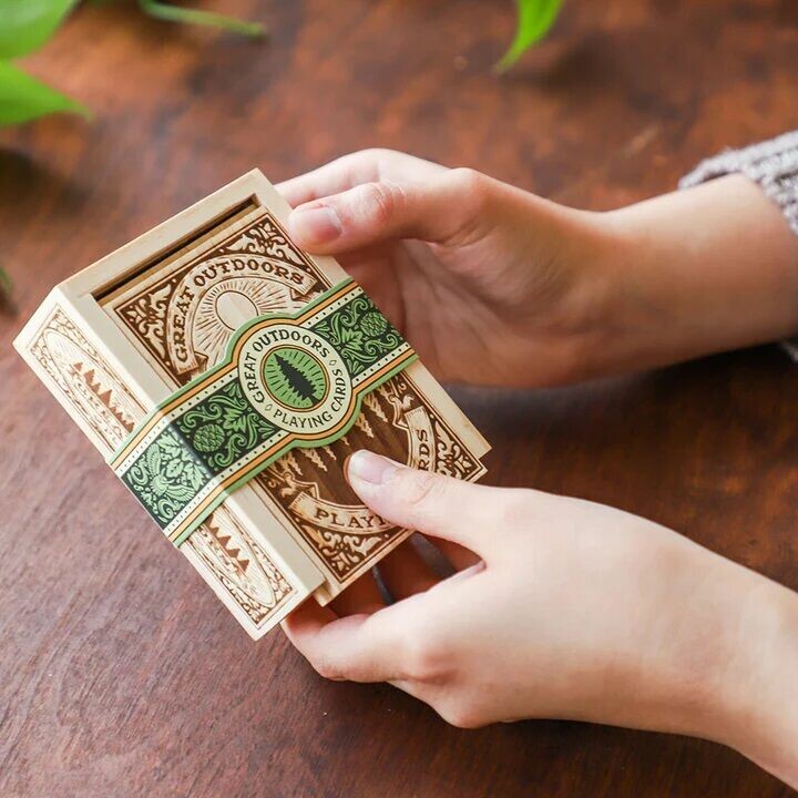 Karetní sada Great Outdoors Playing Cards je poctou přírodě, dobrodružství a klasickému řemeslu. Vyniká nejen krásně ilustrovanými kartami s motivy hor, lesa, slunce, větru či ptáků, ale i luxusním dřevěným boxem, který slouží jako stylové pouzdro i dekorace. Každá karta je tištěna na kvalitním papíru a zdobena ručně kreslenými ilustracemi, které z ní dělají malý umělecký kousek.V balení najdete 52 hracích karet a 2 žolíky, takže je sada plně připravená pro všechny klasické karetní hry – od prší po poker. Díky přírodnímu stylu a estetickému zpracování se hodí i jako dárek pro milovníky kempování, výletů nebo sběratele originálních karet. Karty i krabička působí rustikálně a nadčasově, čímž osloví nejen děti od 8 let, ale i dospělé hráče.Kombinace papíru a pevného dřevěného boxu zajišťuje dlouhou životnost a praktičnost – karty jsou bezpečně uložené a snadno přenositelné. Celkový dojem podtrhuje výjimečné řemeslné zpracování a nostalgický charakter, který evokuje chvíle strávené v přírodě.Hlavní výhody produktu: krásně ilustrované karty s přírodními motivy luxusní dřevěná krabička s vyřezávaným víkem vhodné pro děti i dospělé hráče ideální jako dárek pro milovníky přírody a designu kvalitní zpracování z papíru a dřevaObsah balení: 52x hracích karet 2x žolík 1x dřevěný box s víkemParametry a specifikace: materiál: dřevo, papír věk: 8+