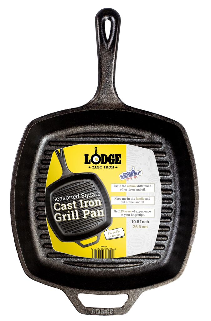 Čtvercová litinová grilovací pánev Lodge 26 cm