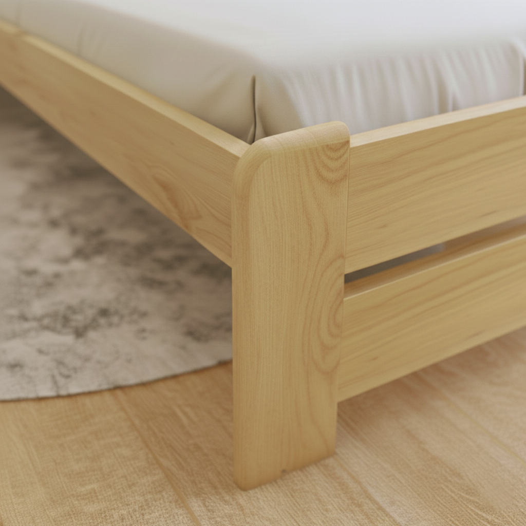 Ochranný lak chrání krásu dřeva před poškozením a zajišťuje velmi snadnou údržbu.Postel EVROPA: Detailní pohled na konstrukci