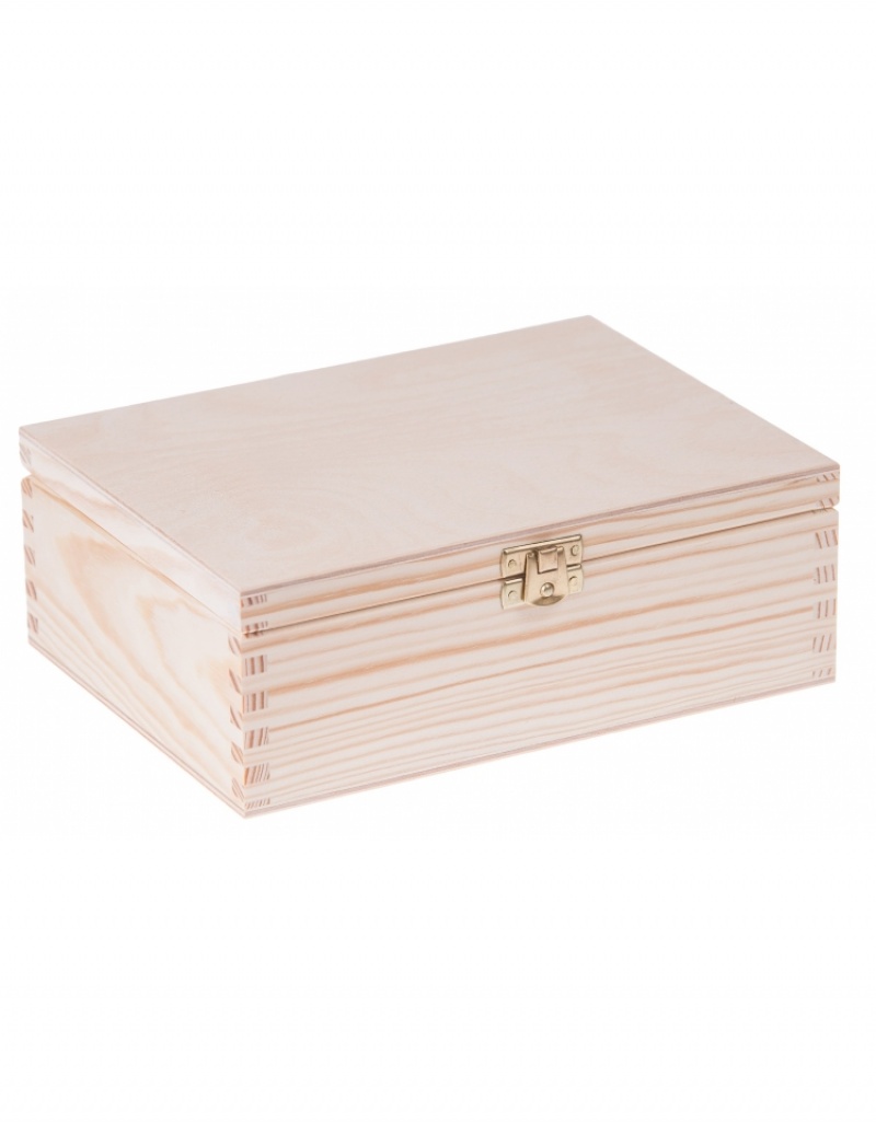 FK Dřevěná krabička na čaj s přihrádkami, se zámkem - 22x16x8 cm, Přírodní