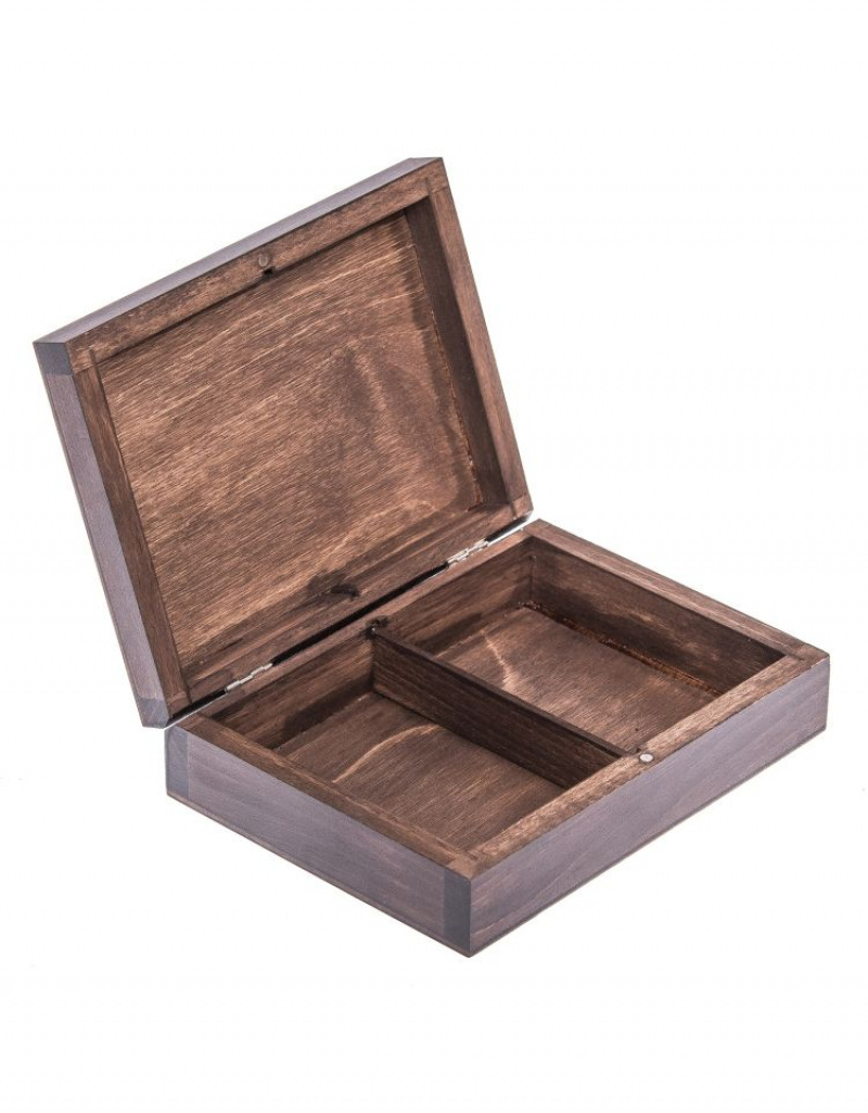 FK Dřevěná krabička s dvěmi přihrádkami - 16x12x4 cm, Tmavě hnědá