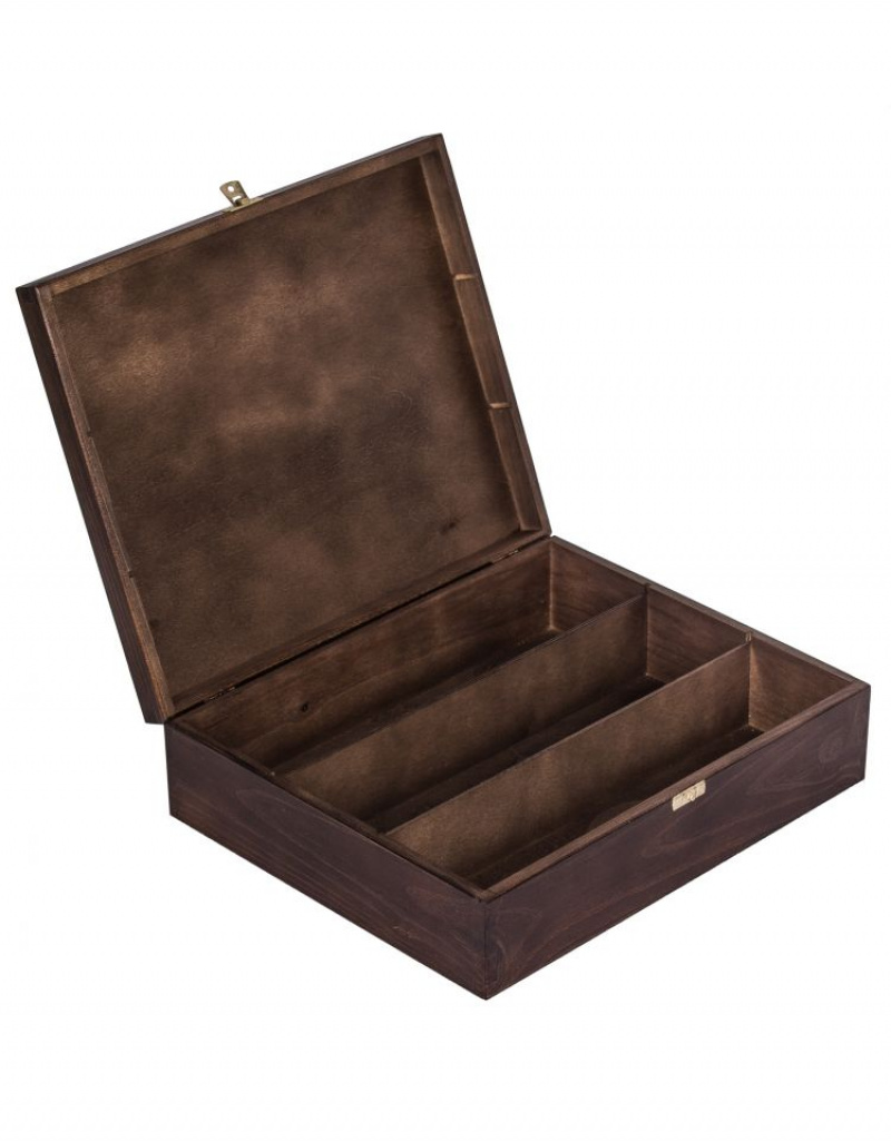 FK Dřevěná krabička na tři láhve - 36x30x10 cm, Tmavě hnědá