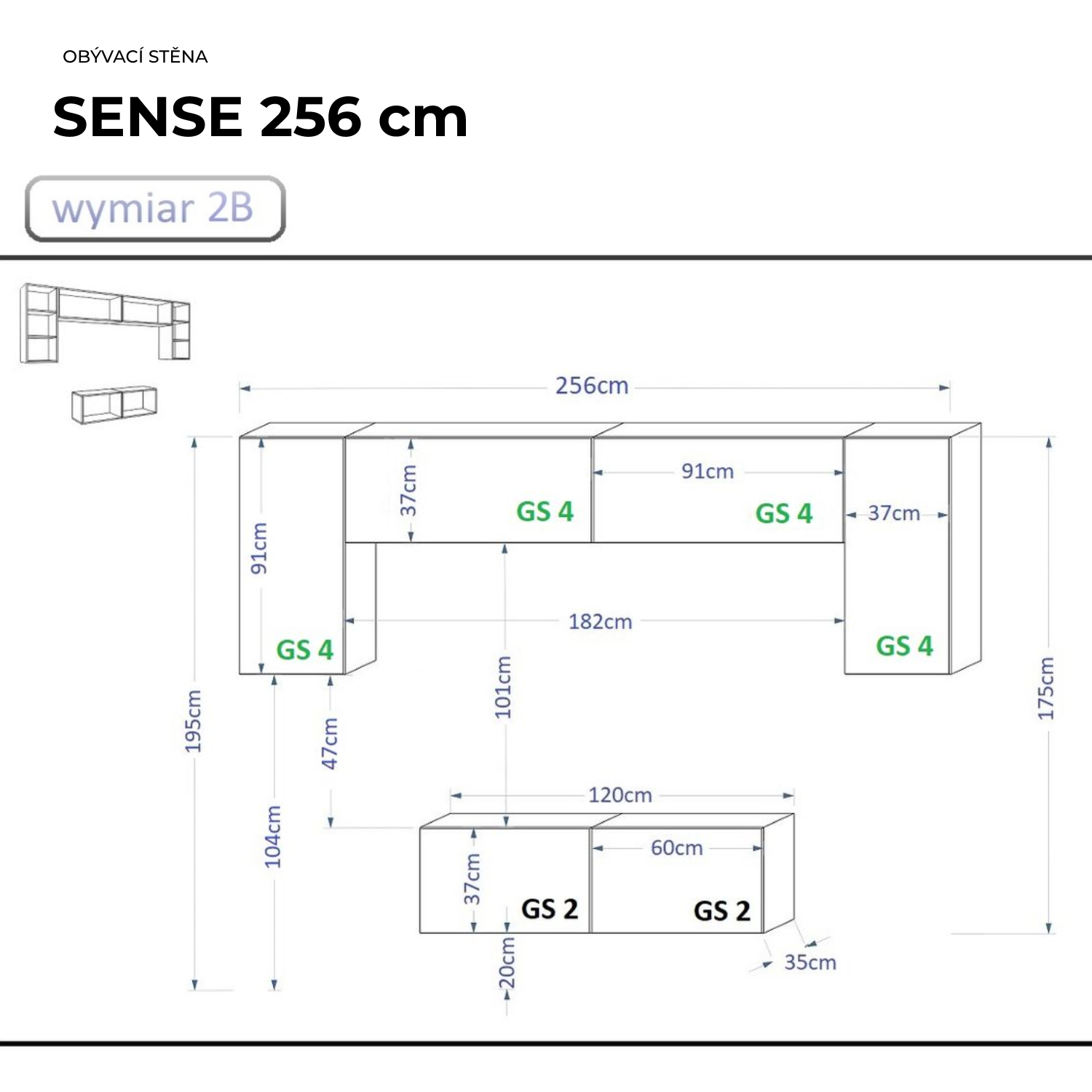 Ral Obývací stěna SENSE 256 cm - Bílý lesk
