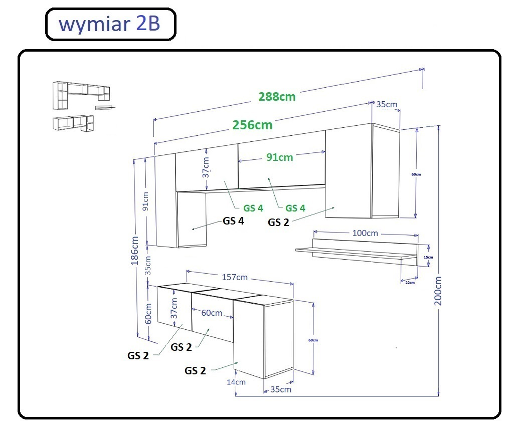 Celá sestava je variabilní každá skříňka se montuje zvlášť a dá se nastavit jakkoliv, systém otevírání (písty a panty) je také variabilní jdou nastavit svisle i vodorovně.