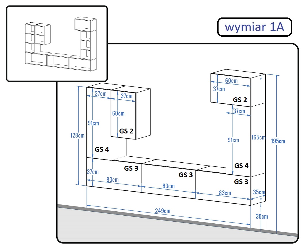 Celá sestava je variabilní každá skříňka se montuje zvlášť a dá se nastavit jakkoliv, systém otevírání (písty a panty) je také variabilní jdou nastavit svisle i vodorovně.