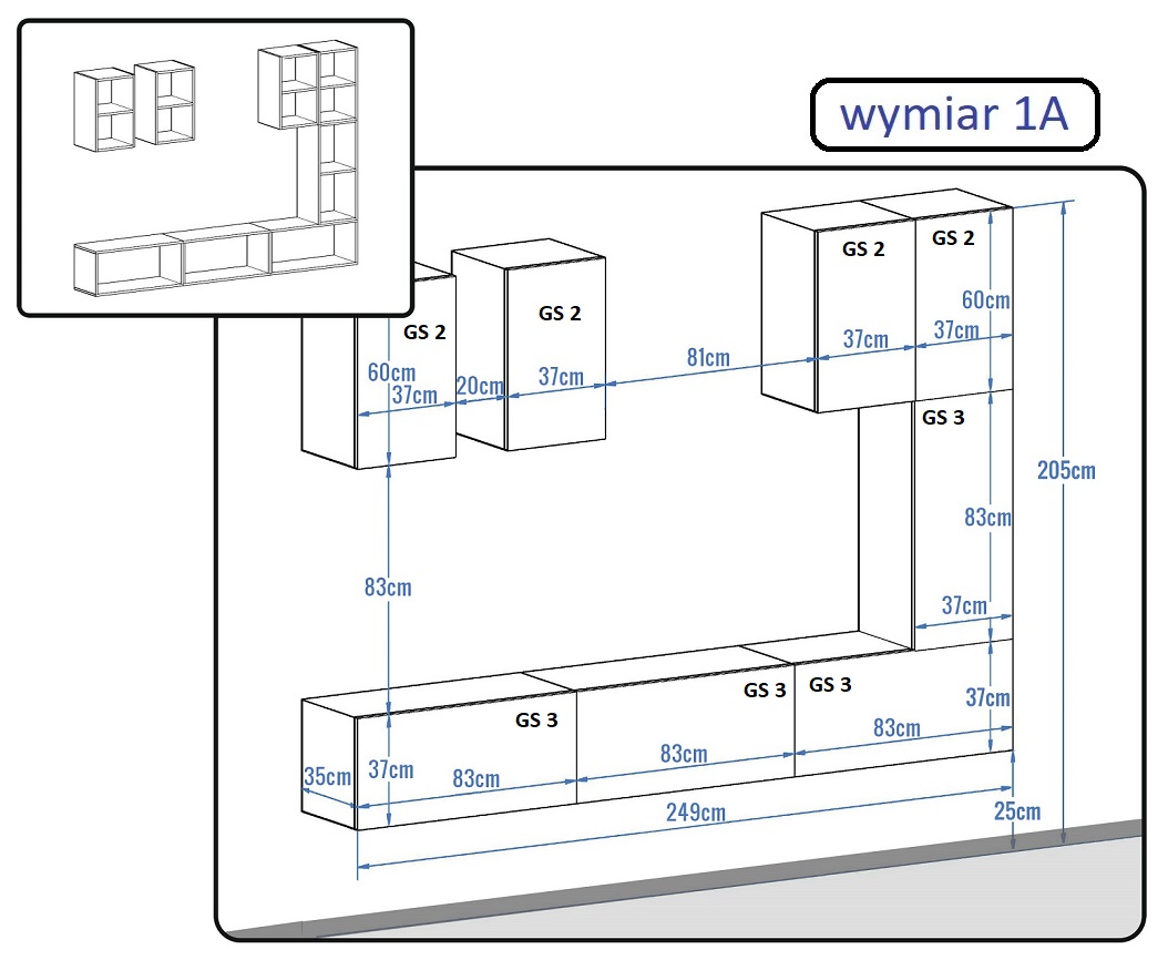 Celá sestava je variabilní každá skříňka se montuje zvlášť a dá se nastavit jakkoliv, systém otevírání (písty a panty) je také variabilní jdou nastavit svisle i vodorovně.