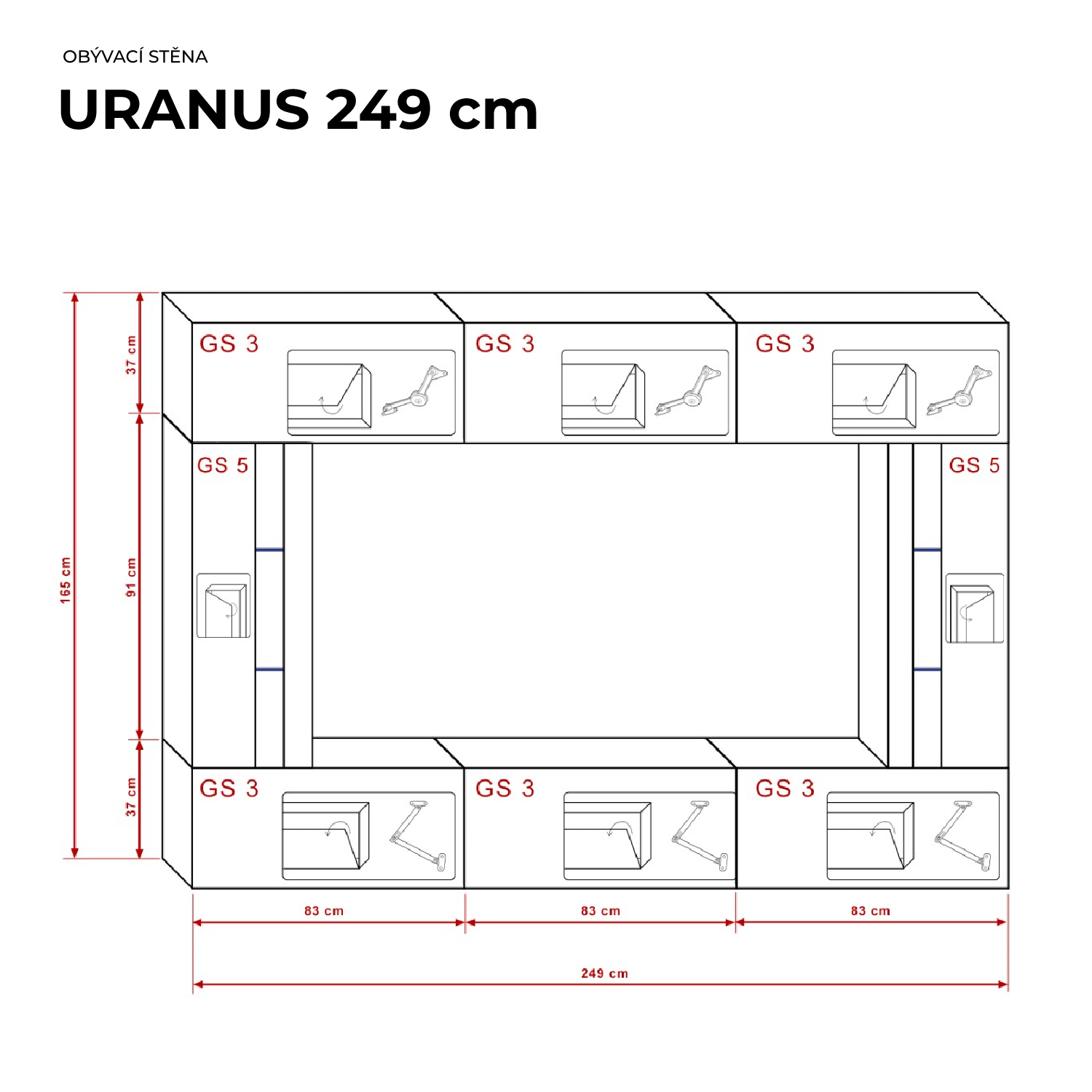Ral Obývací stěna URANUS 2, 249 cm - Bílý lesk