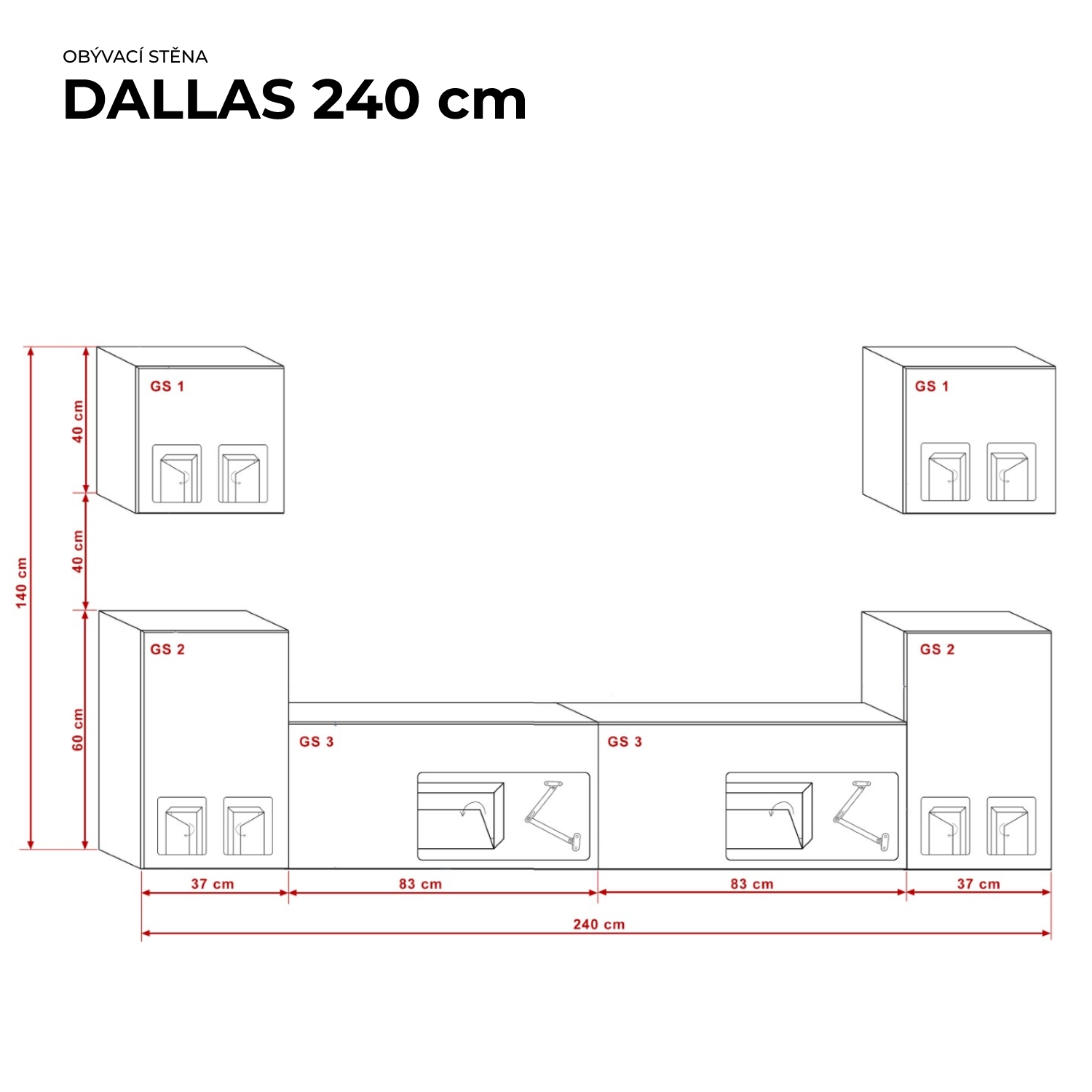 Ral Obývací stěna DALLAS 240 cm - Černý lesk