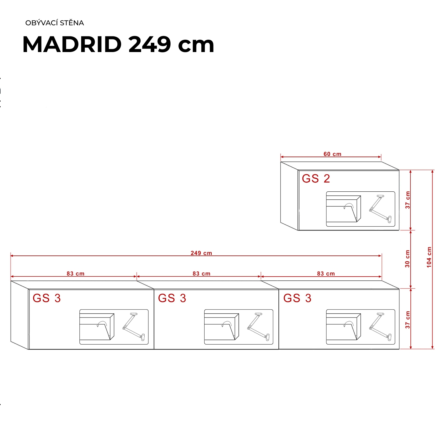 Ral Obývací stěna MADRID 2, 249 cm - Bílý lesk