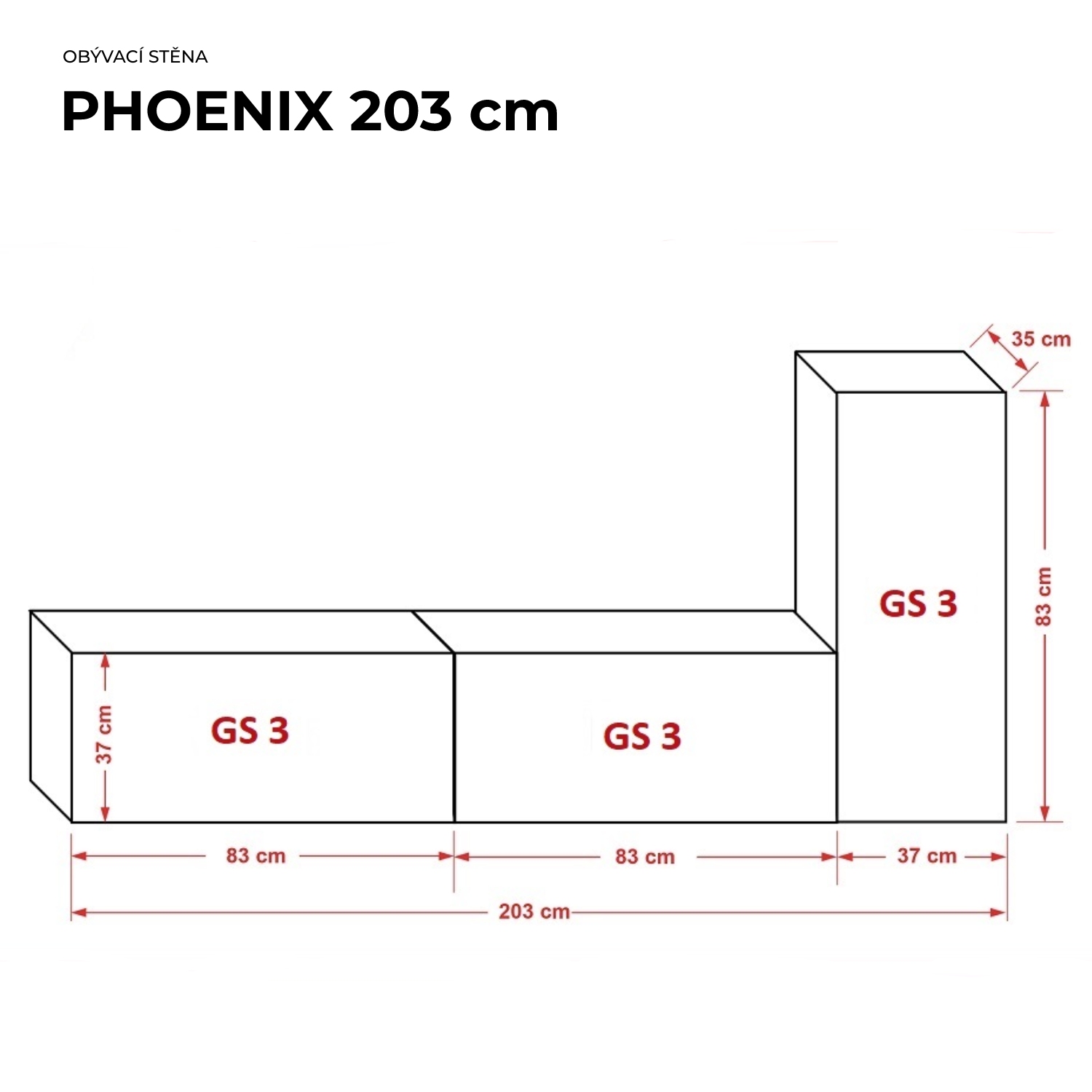 Ral Obývací stěna PHOENIX 2, 203 cm - Bílý lesk