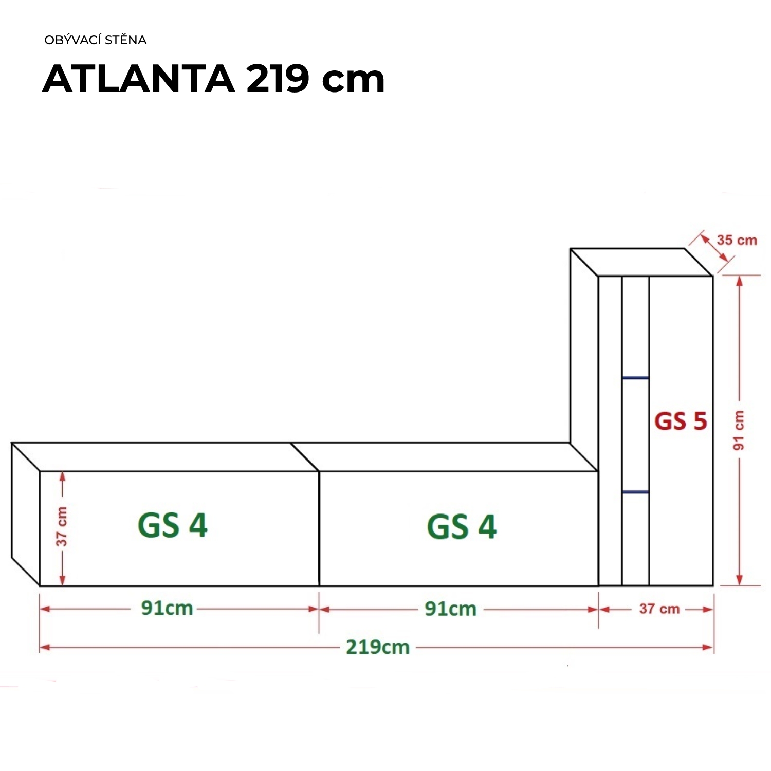 Ral Obývací stěna ATLANTA 3, 219 cm - Černý lesk