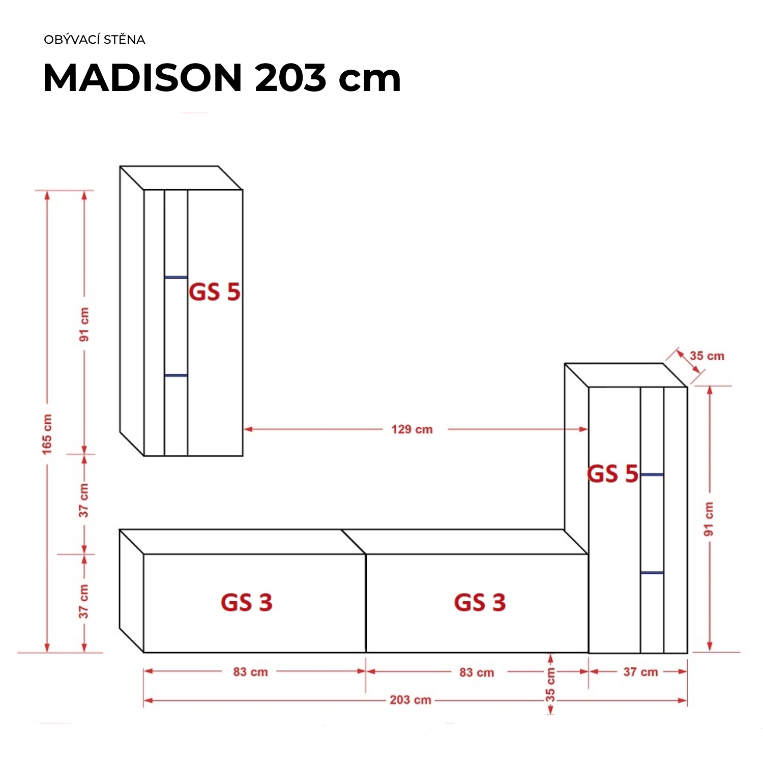 Ral Obývací stěna MADISON 203 cm - Černý lesk