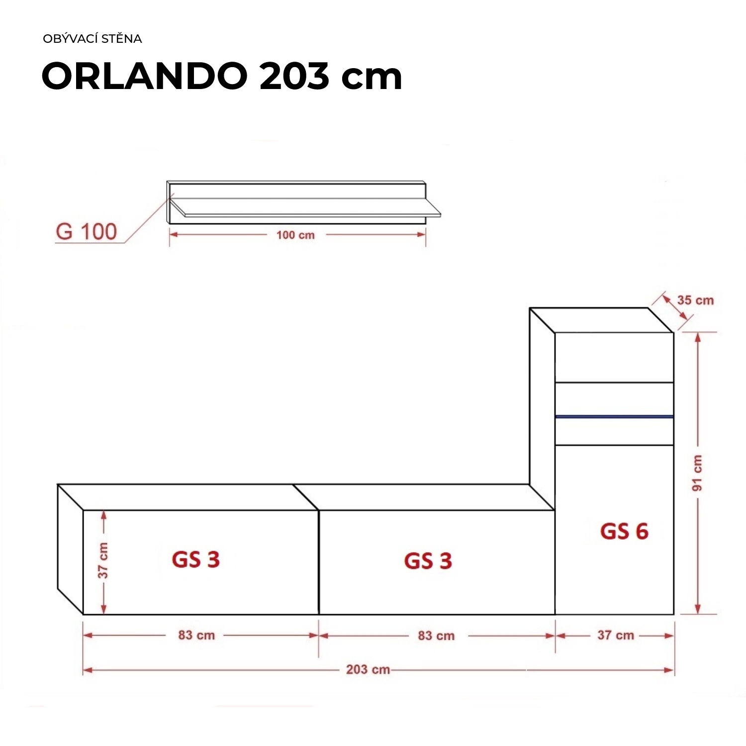 Ral Obývací stěna ORLANDO 1, 203 cm - Bílý lesk