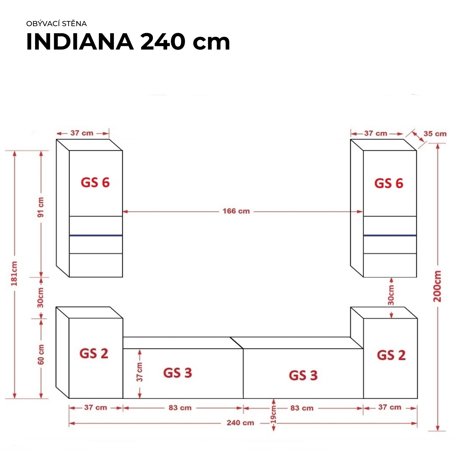 Ral Obývací stěna INDIANA 2, 240 cm - Bílý lesk