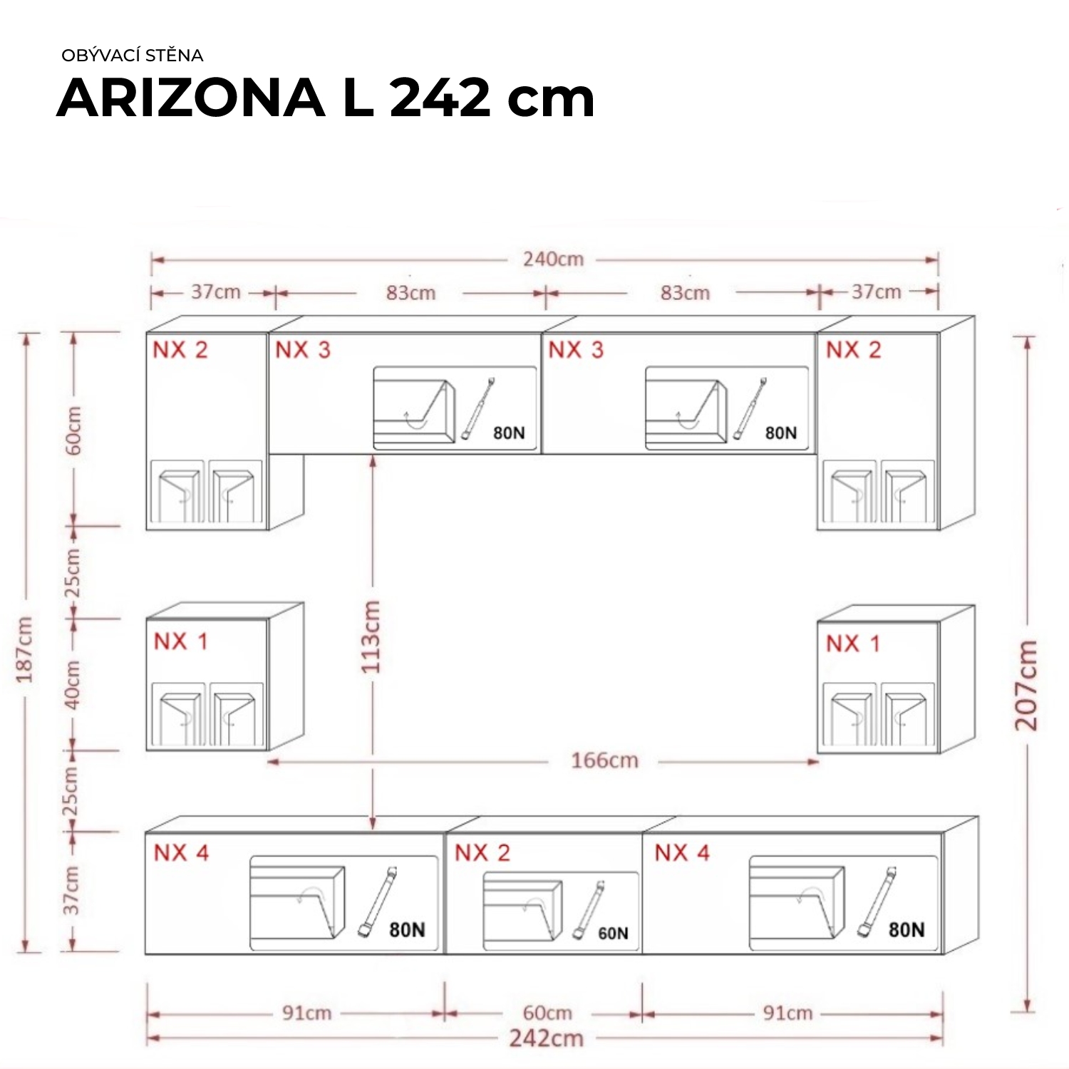 Ral Obývací stěna ARIZONA L, 242 cm - Bílý lesk