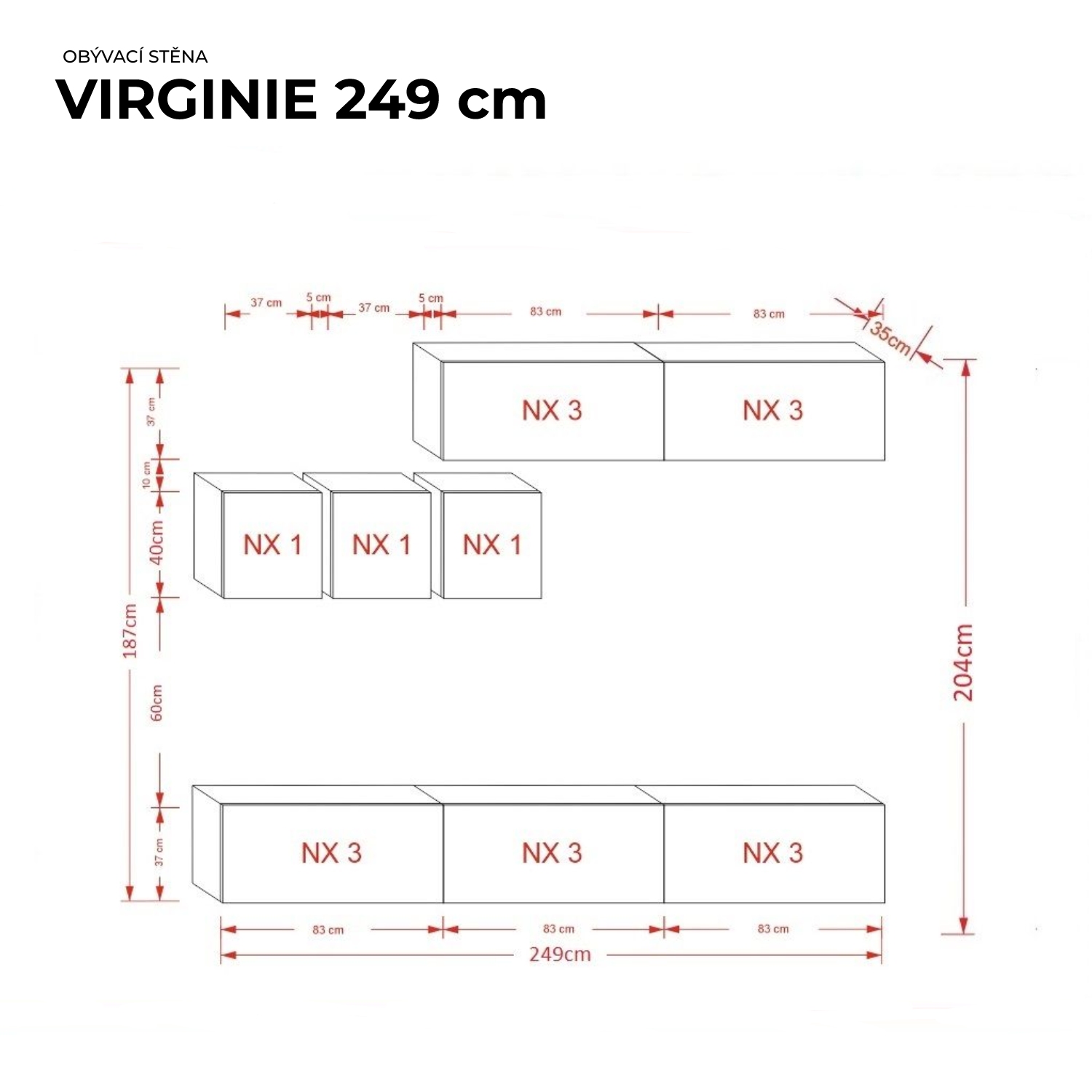 Ral Obývací stěna VIRGINIE 3, 249 cm - Černý lesk