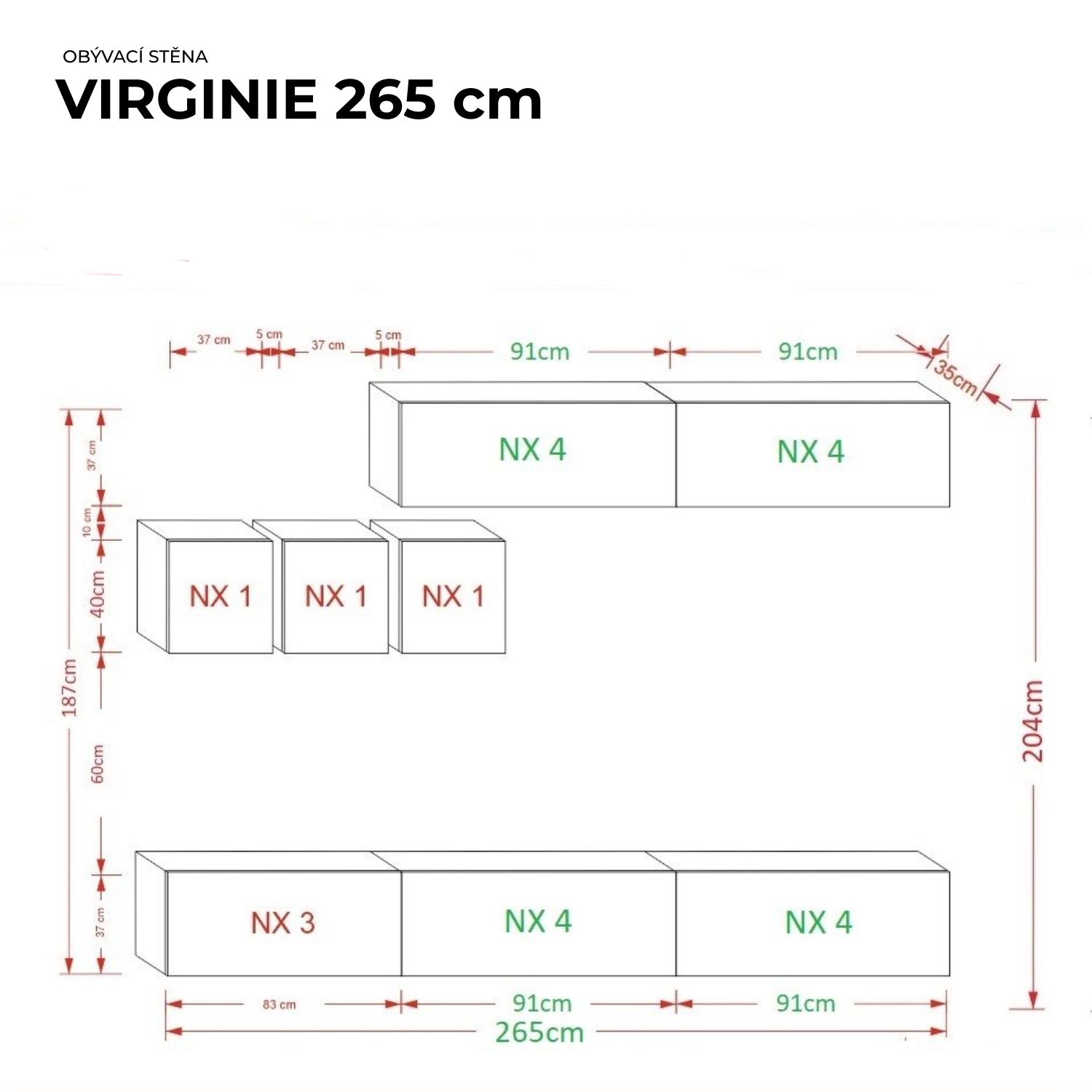 Ral Obývací stěna VIRGINIE 5, 265 cm - Bílo/černý lesk