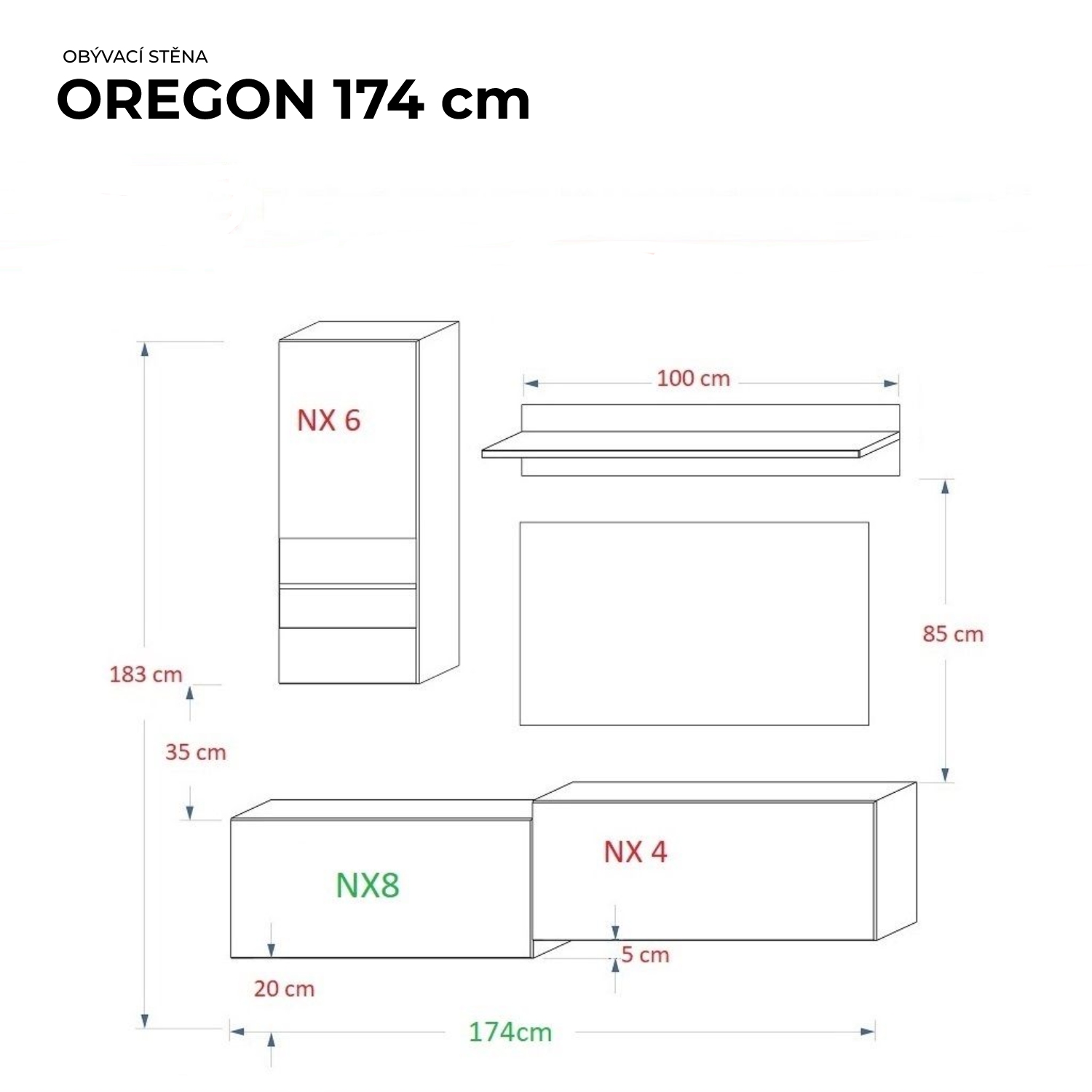Ral Obývací stěna OREGON 5, 174 cm - Bílý lesk
