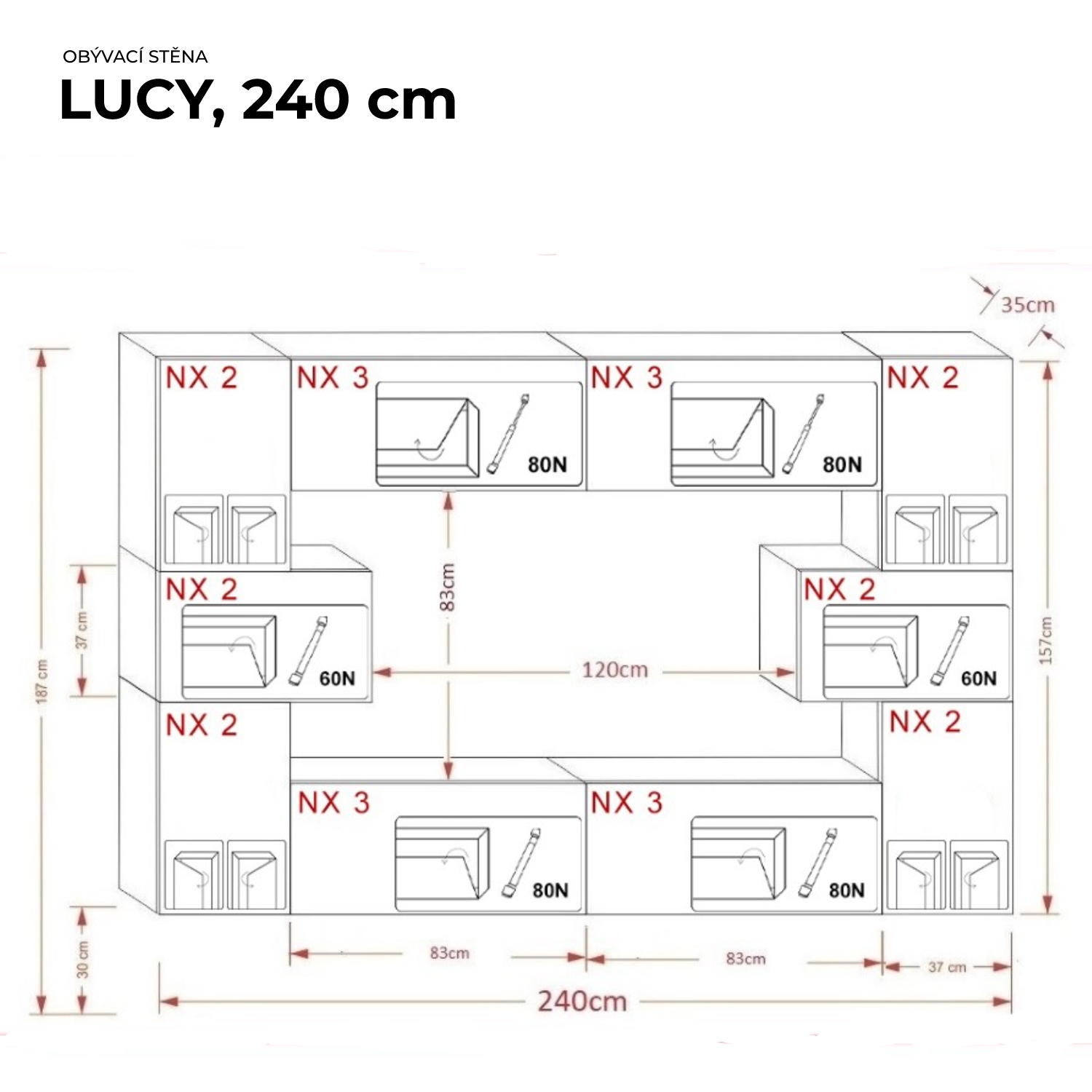 Ral Obývací stěna LUCY 4, 240 cm - Bílo/černý lesk