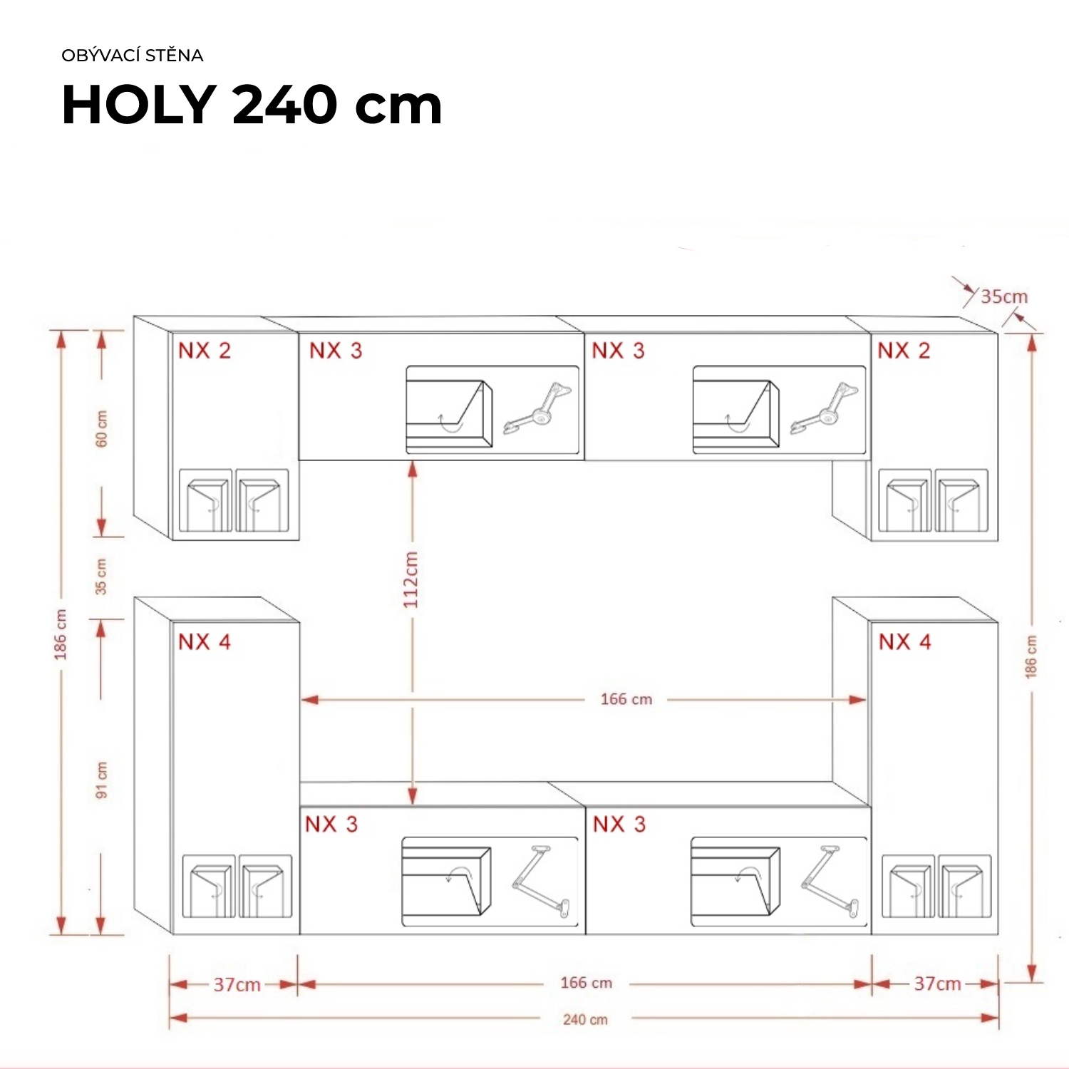 Ral Obývací stěna HOLY 1, 240 cm - Černý lesk