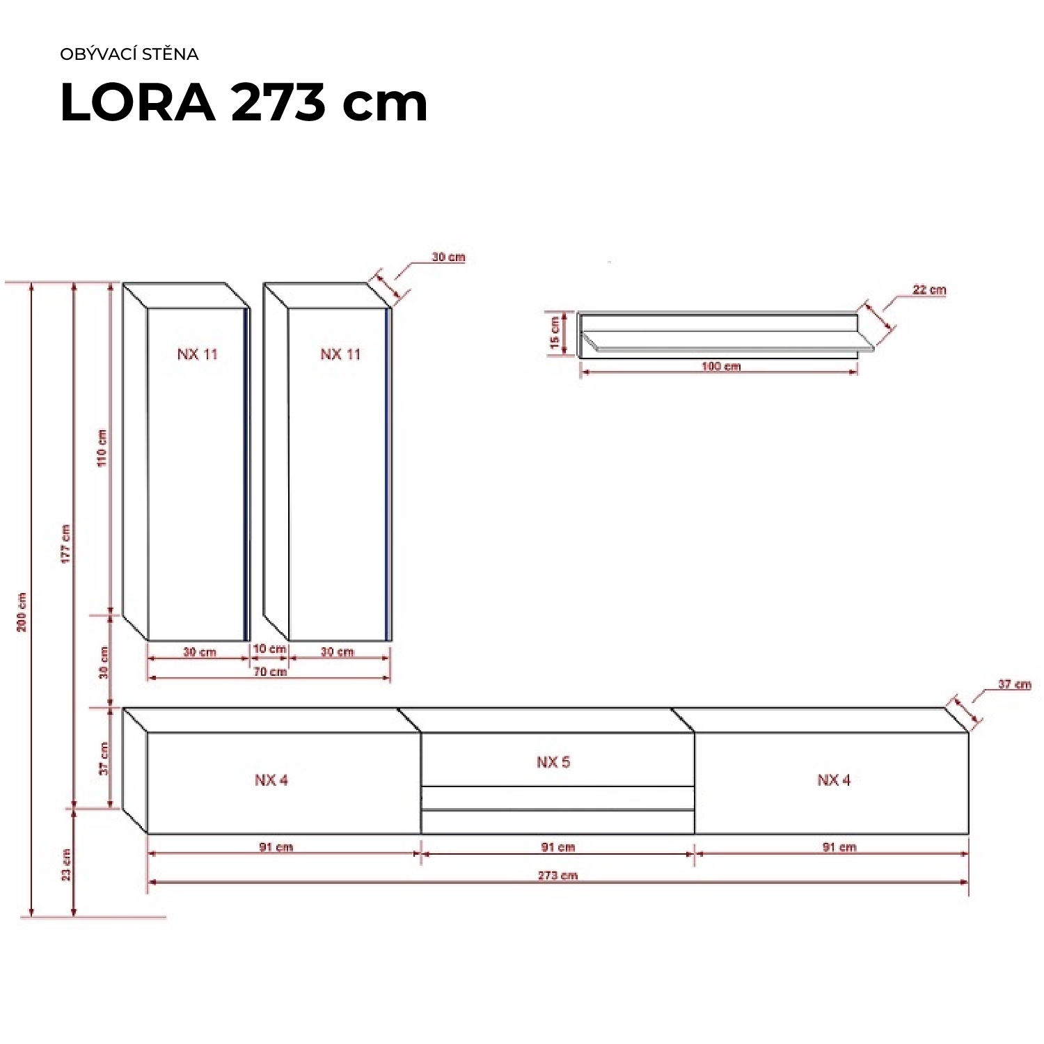 Ral Obývací stěna LORA 273 cm - Černý lesk