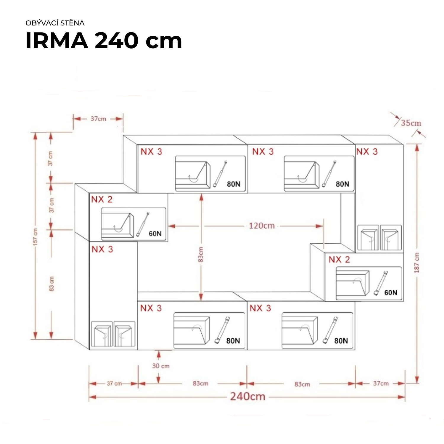Ral Obývací stěna IRMA 4, 240 cm - Bílý lesk