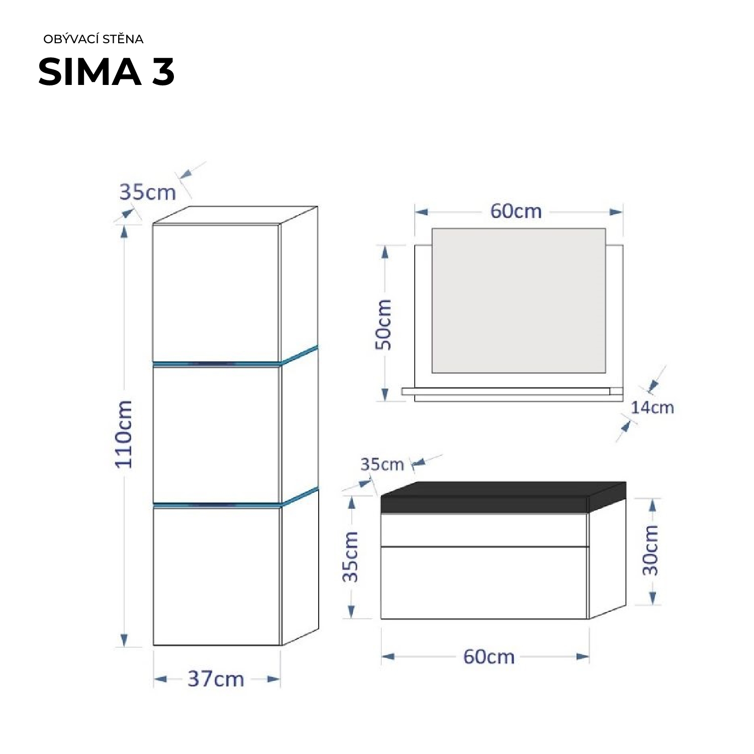Ral Koupelnová stěna + umyvadlo SIMA 3 - Bílý lesk