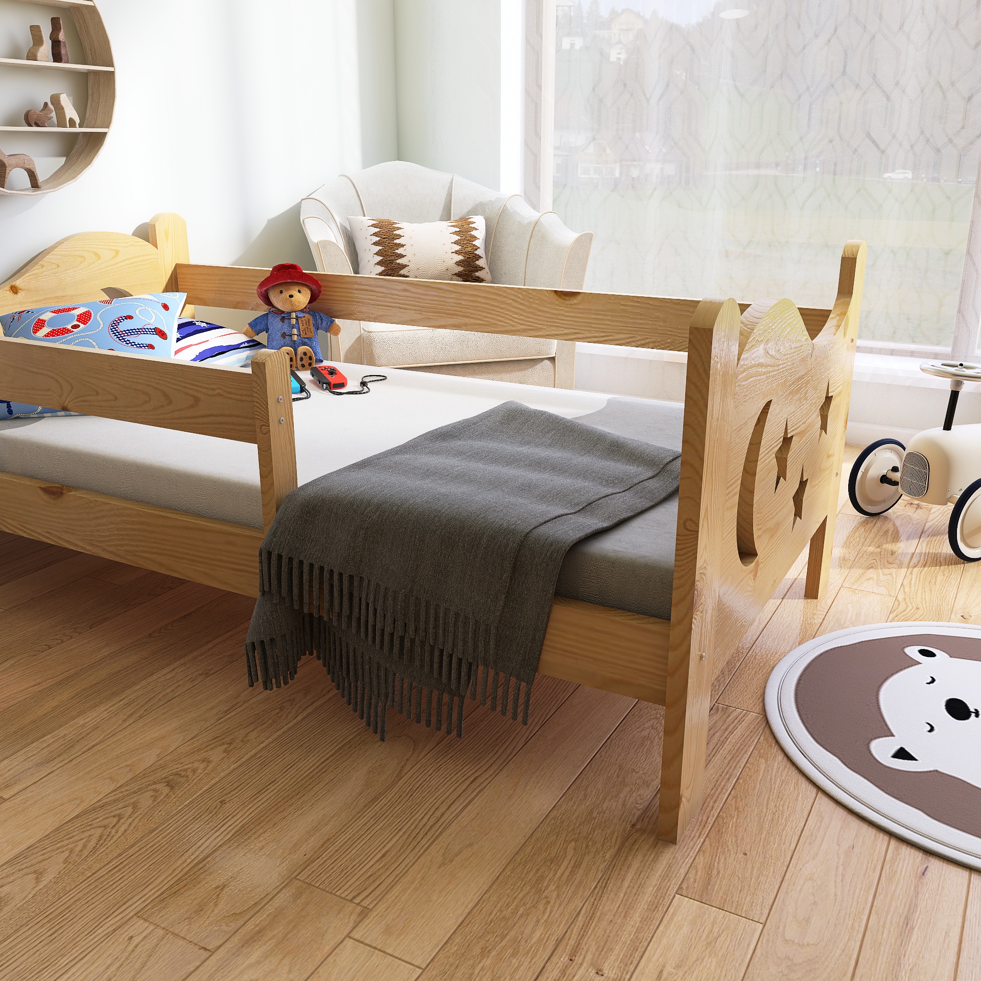 - Bezpečnost: Odnímatelná zábrana, když přijde čas na větší samostatnost a zaoblené hrany.