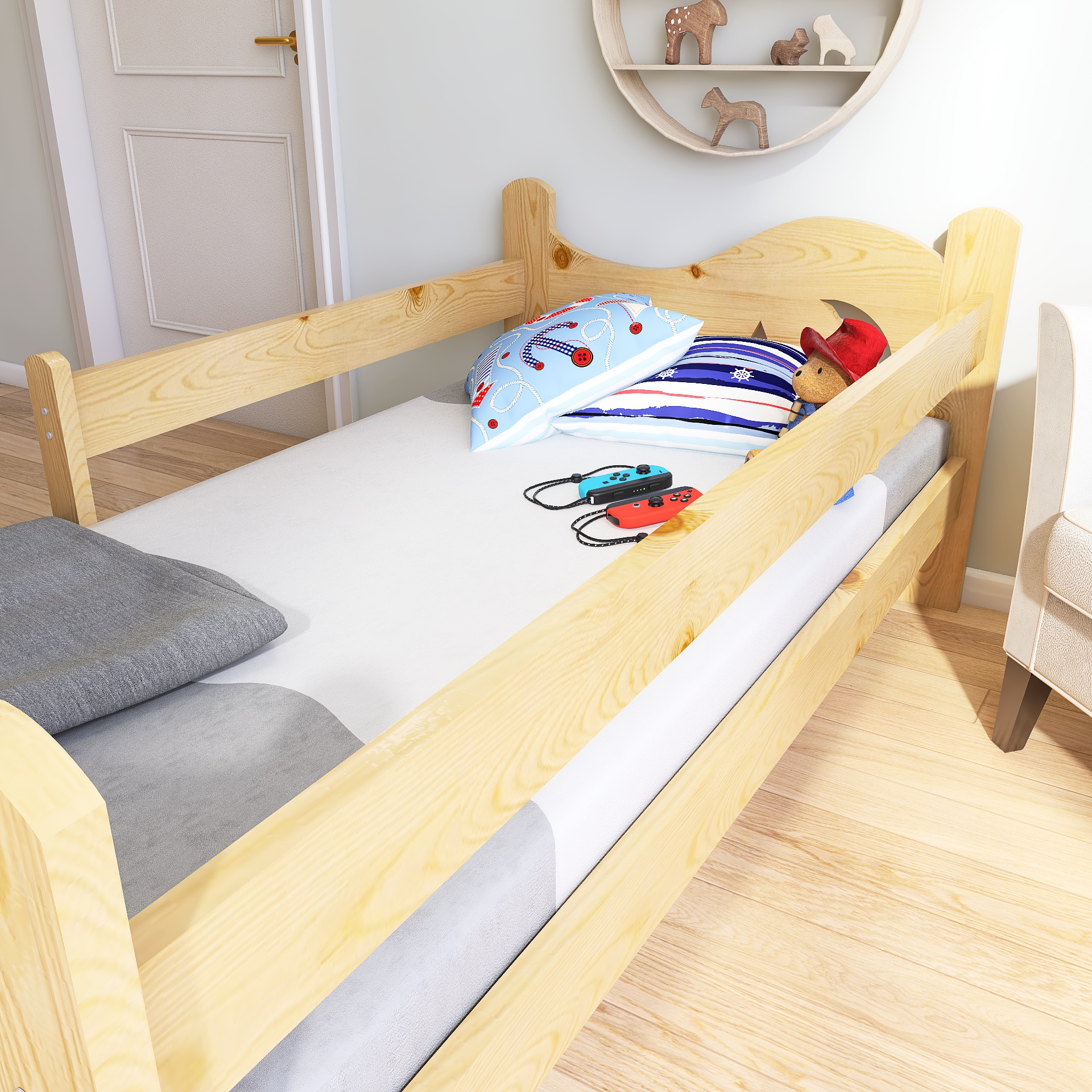 Postel je vyrobena z odolného a lehkého borovicového dřeva s krásnou přírodní texturou. Masiv zaručuje dlouhou životnost a stabilitu.
