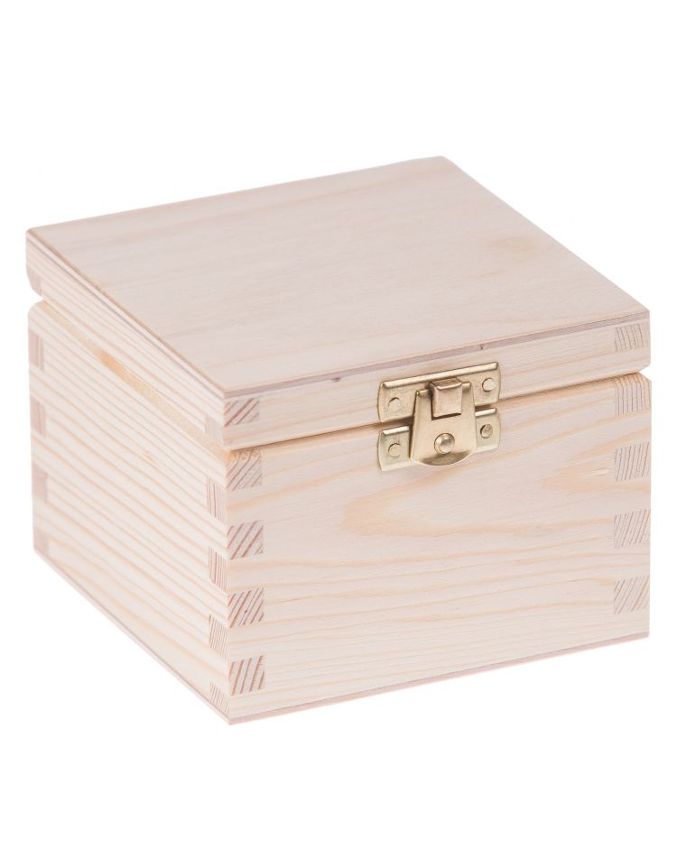 FK Dřevěná krabička se sponou - 10x10x8 cm, Přírodní