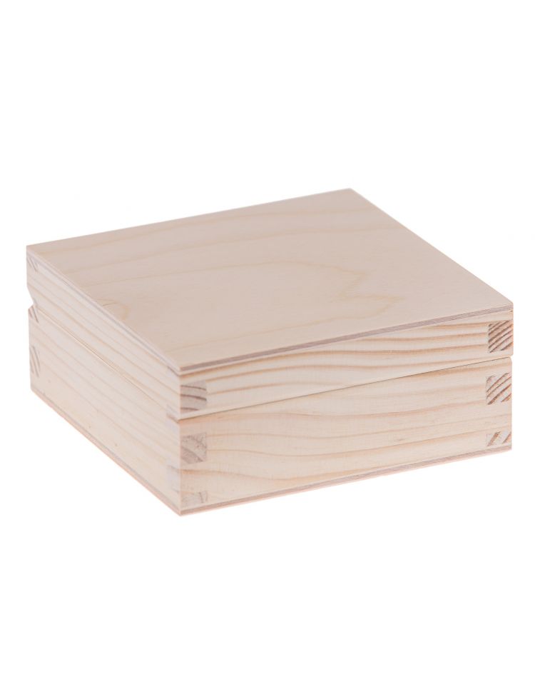 Představujeme malý, čtvercový, dřevěný krabicový kontejner o rozměrech 12x12 cm - ideální pro skladování malých předmětů. Má víko připevněné na jemných pantech.