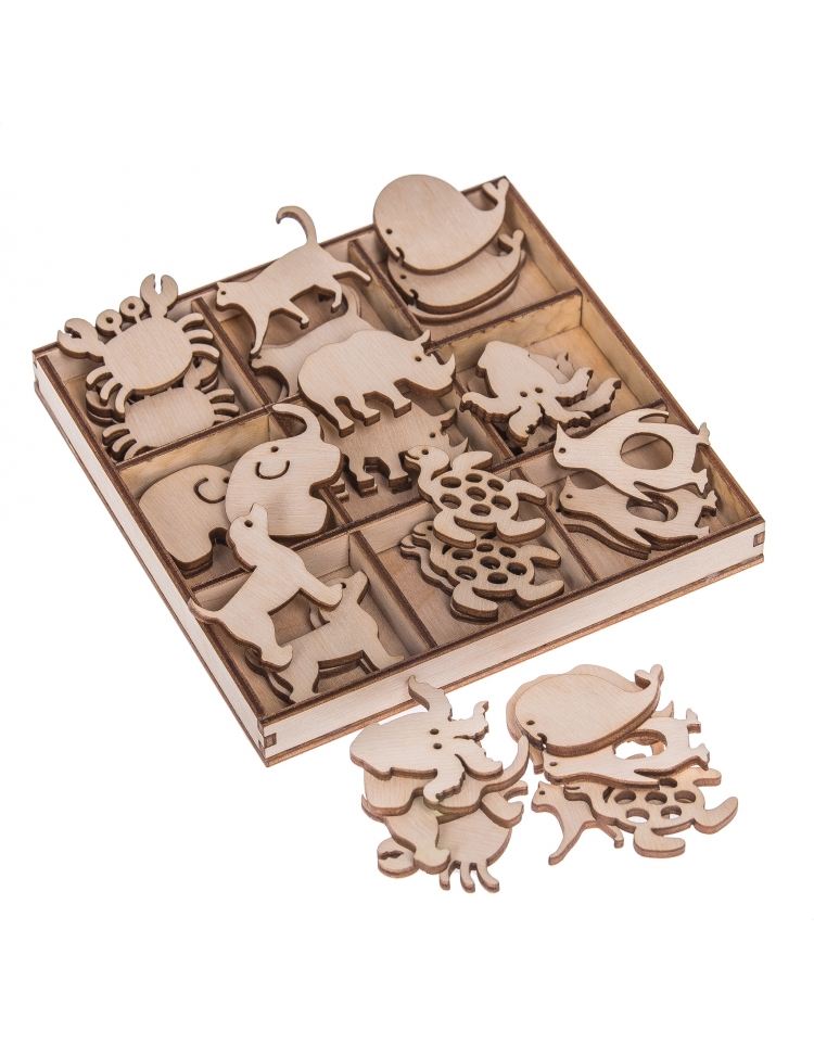 FK Dřevěná sada ozdob v dárkovém balení (zvířátka) - 13x13 cm