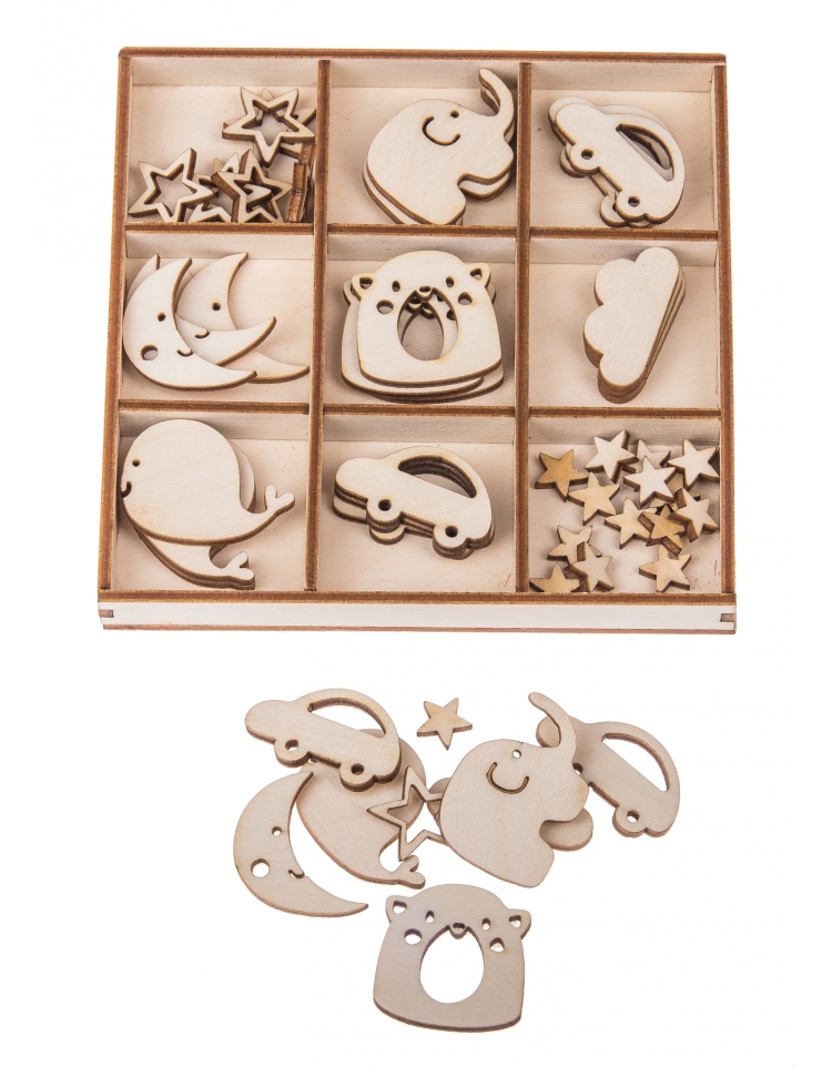 FK Dřevěná sada ozdob (mix) - 13x13 cm