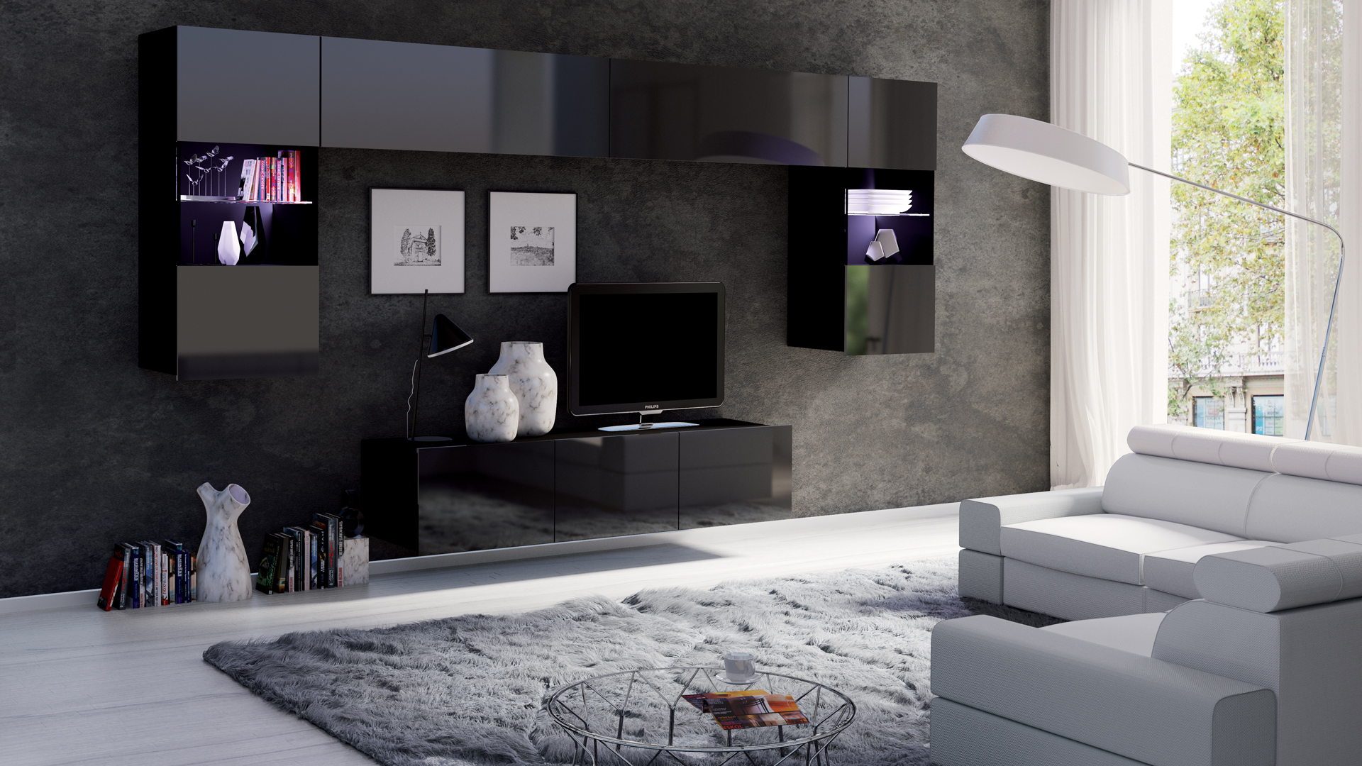 GAB Obývací stěna LORONA 2, Černá 300 cm